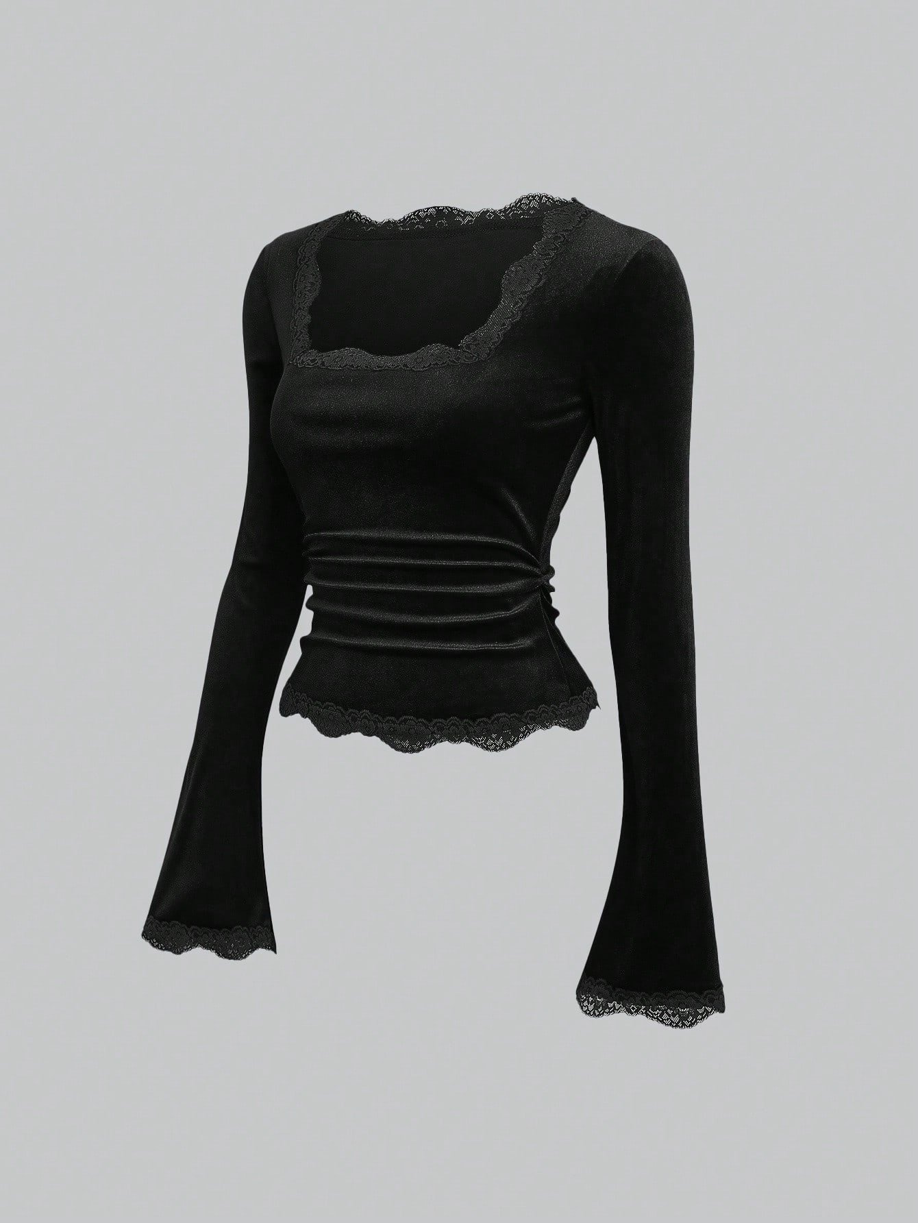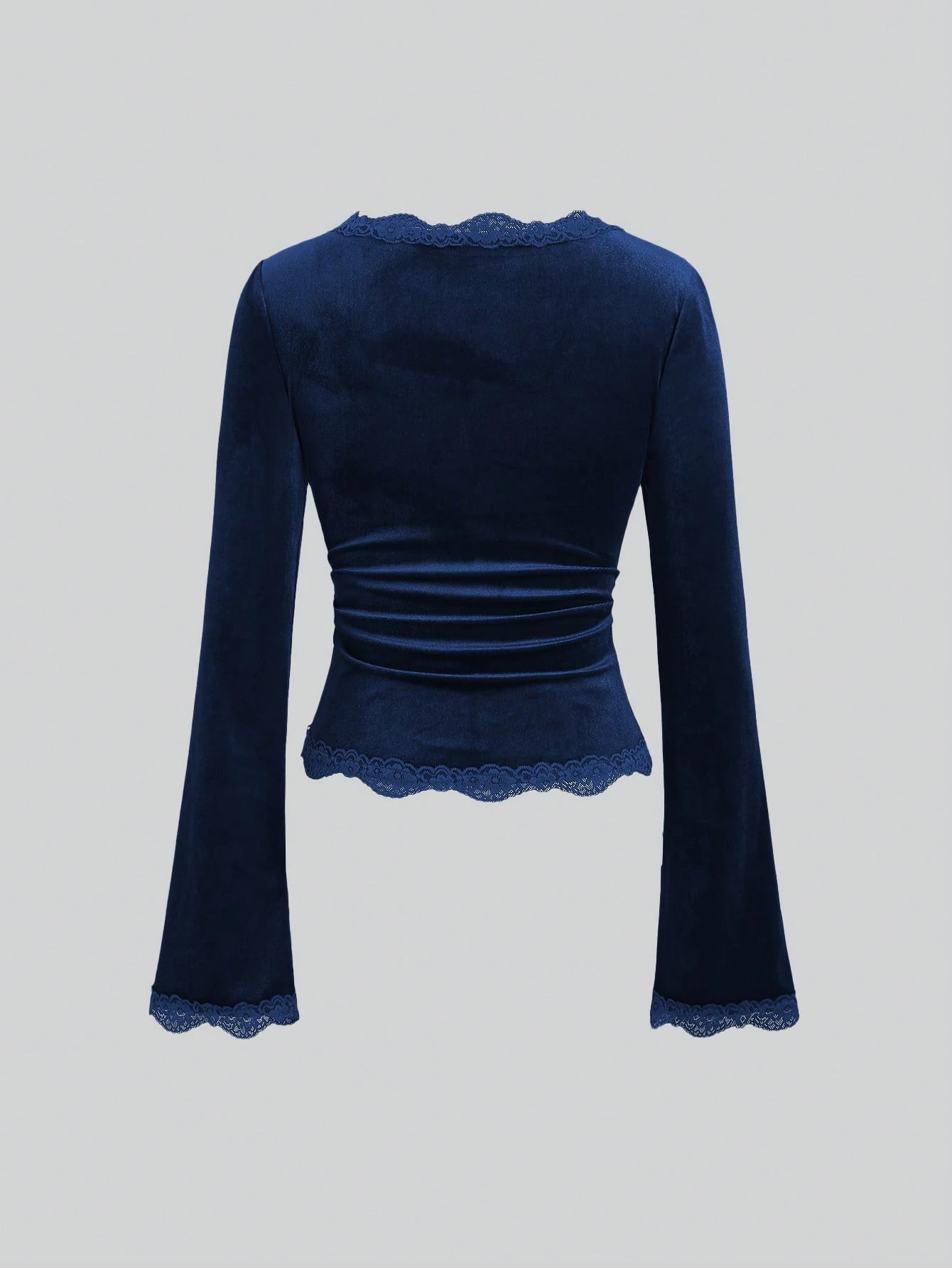 Soyez le premier à laisser votre avis sur “Sweetra Chemise femme à manches évasées et col en dentelle, style vintage français”