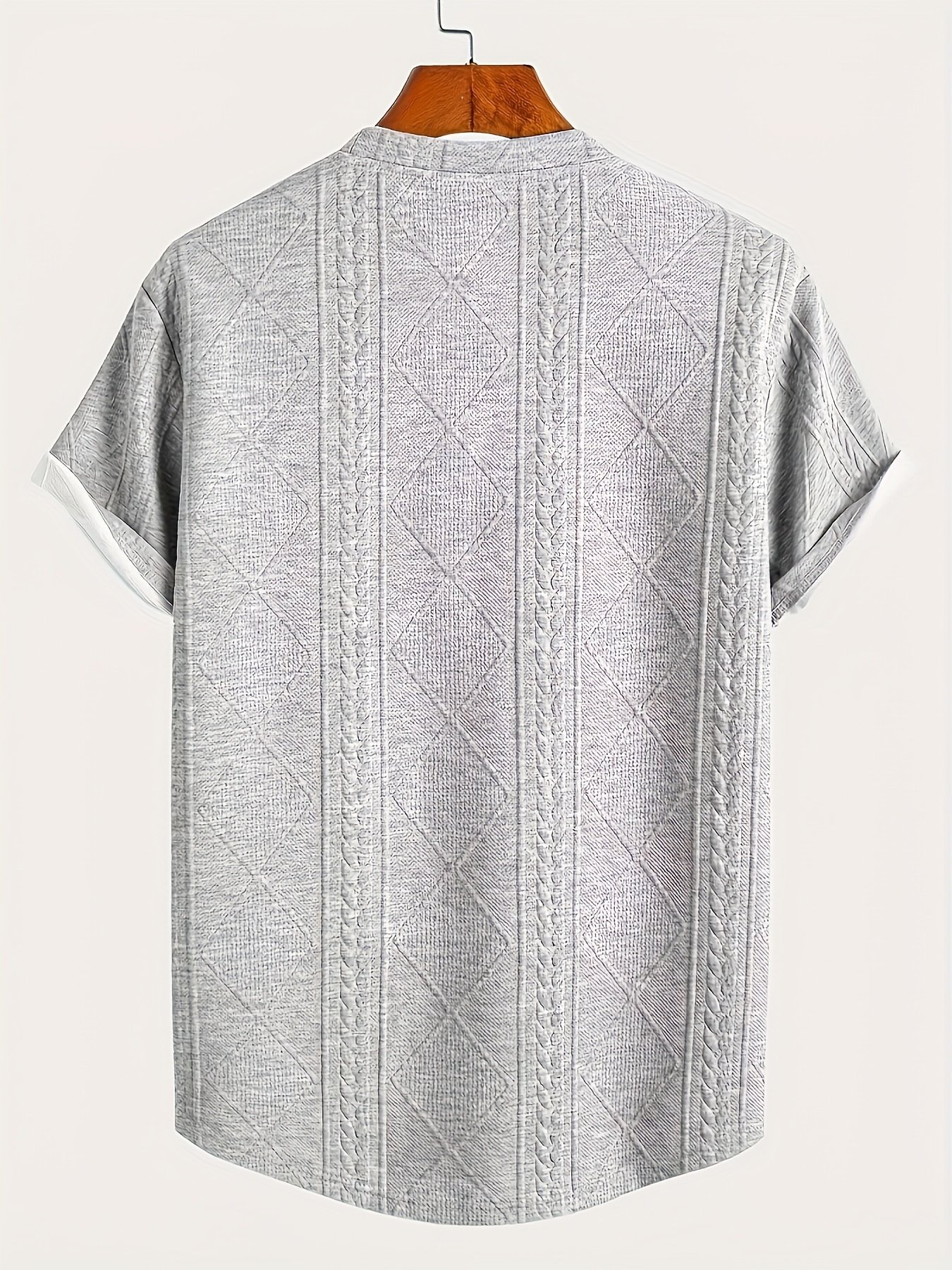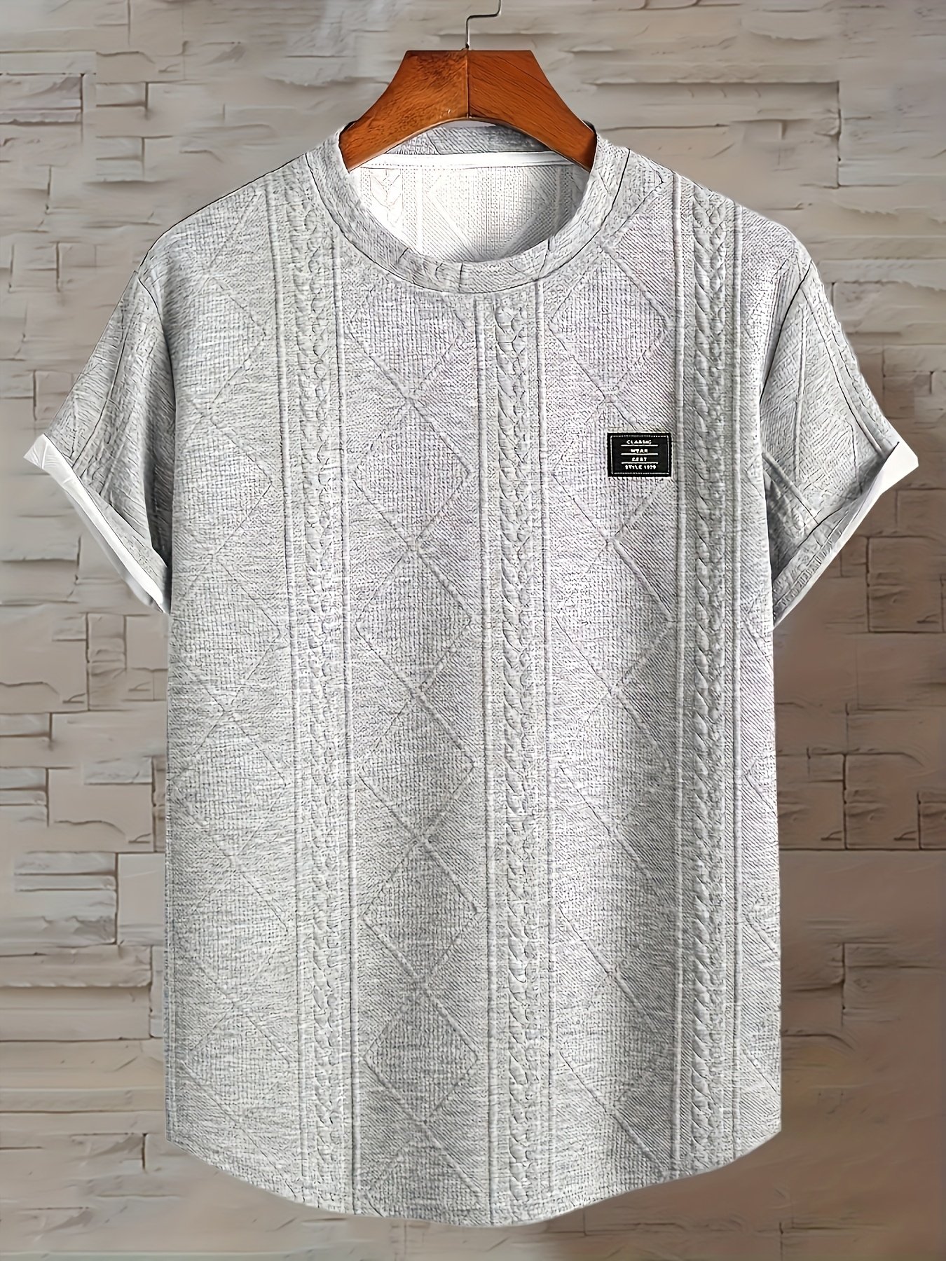 T-shirt à manches courtes à motif en relief pour homme, 100% polyester, tissu tricoté à col rond, légèrement élastique, haut de couleur formelle