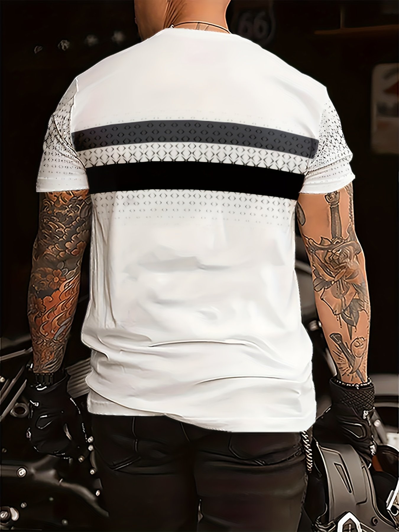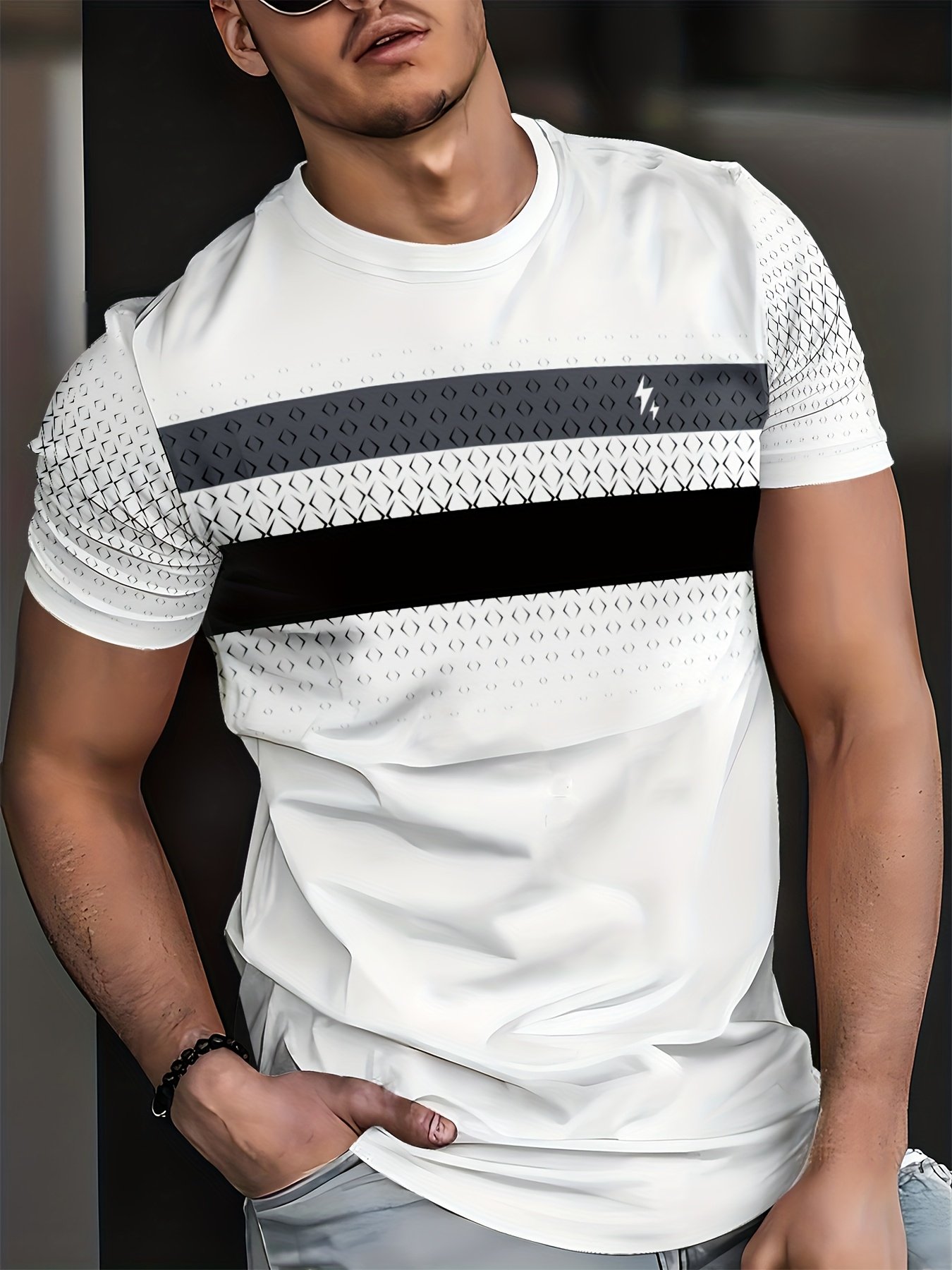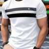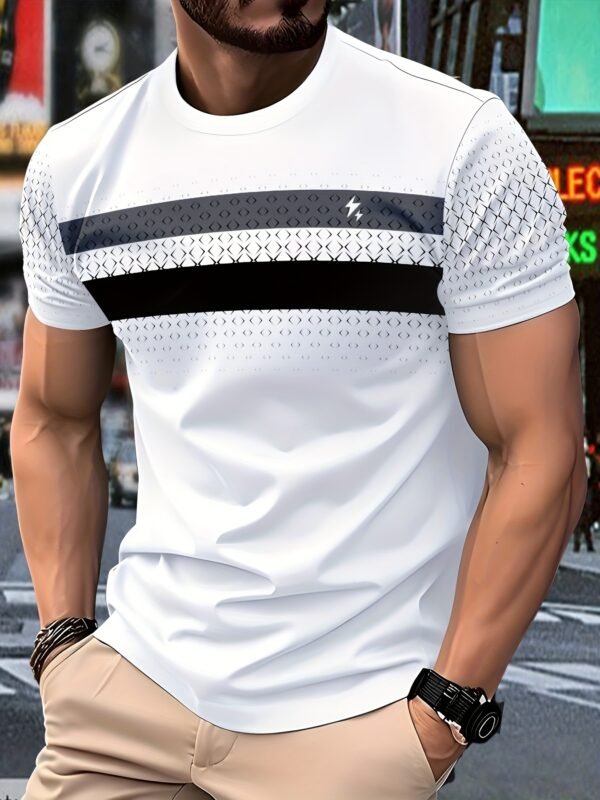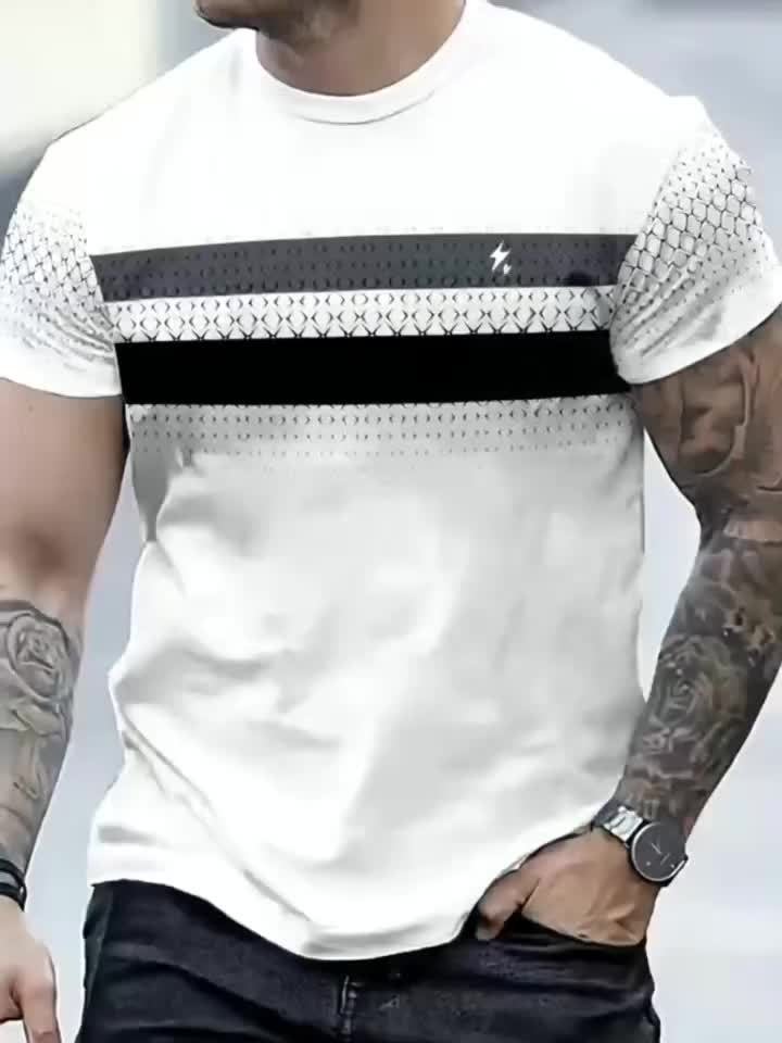 T-shirt à manches courtes décontracté pour homme avec imprimé graphique audacieux et rayé