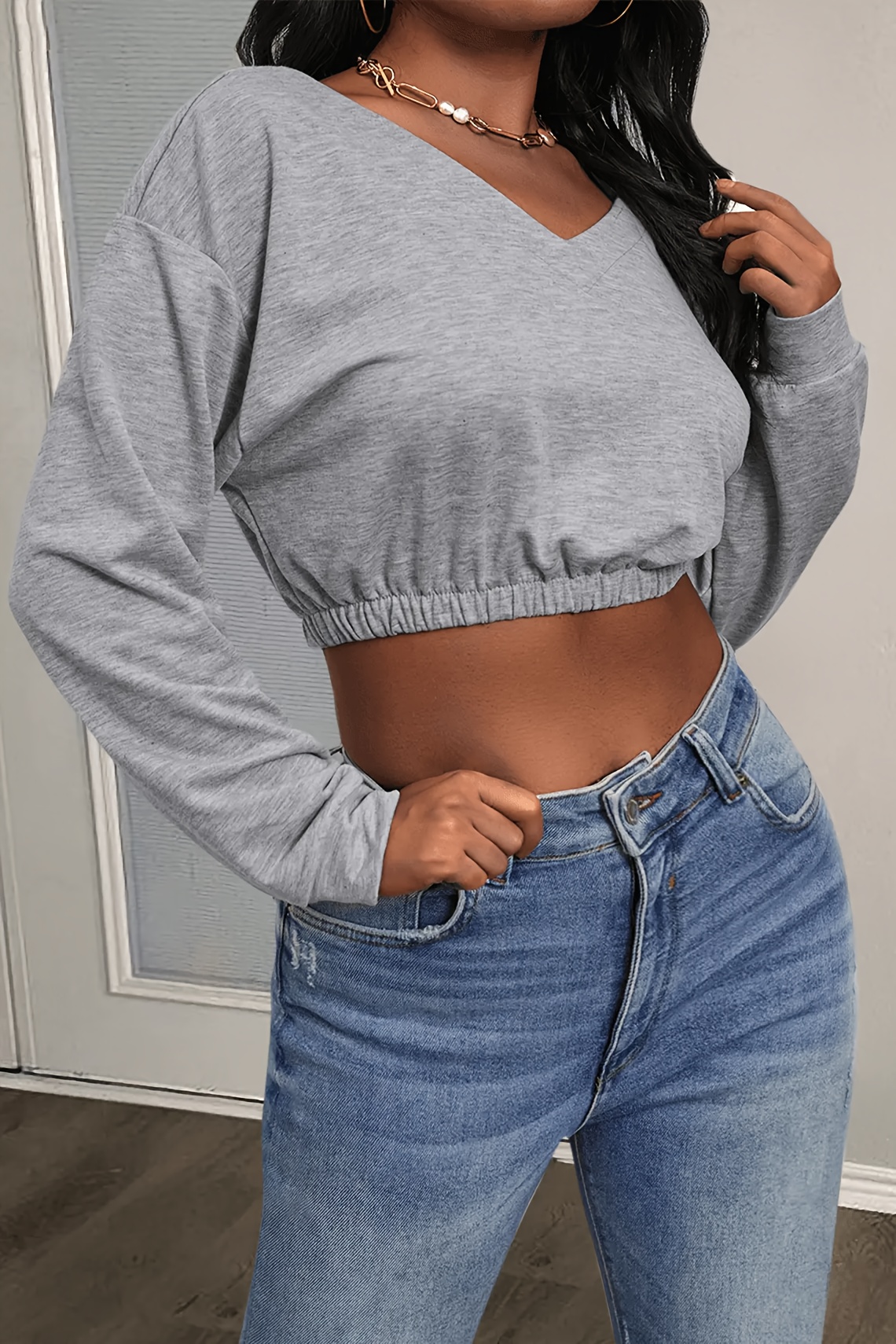 T-shirt court top À Manches Longues Pour Femmes
