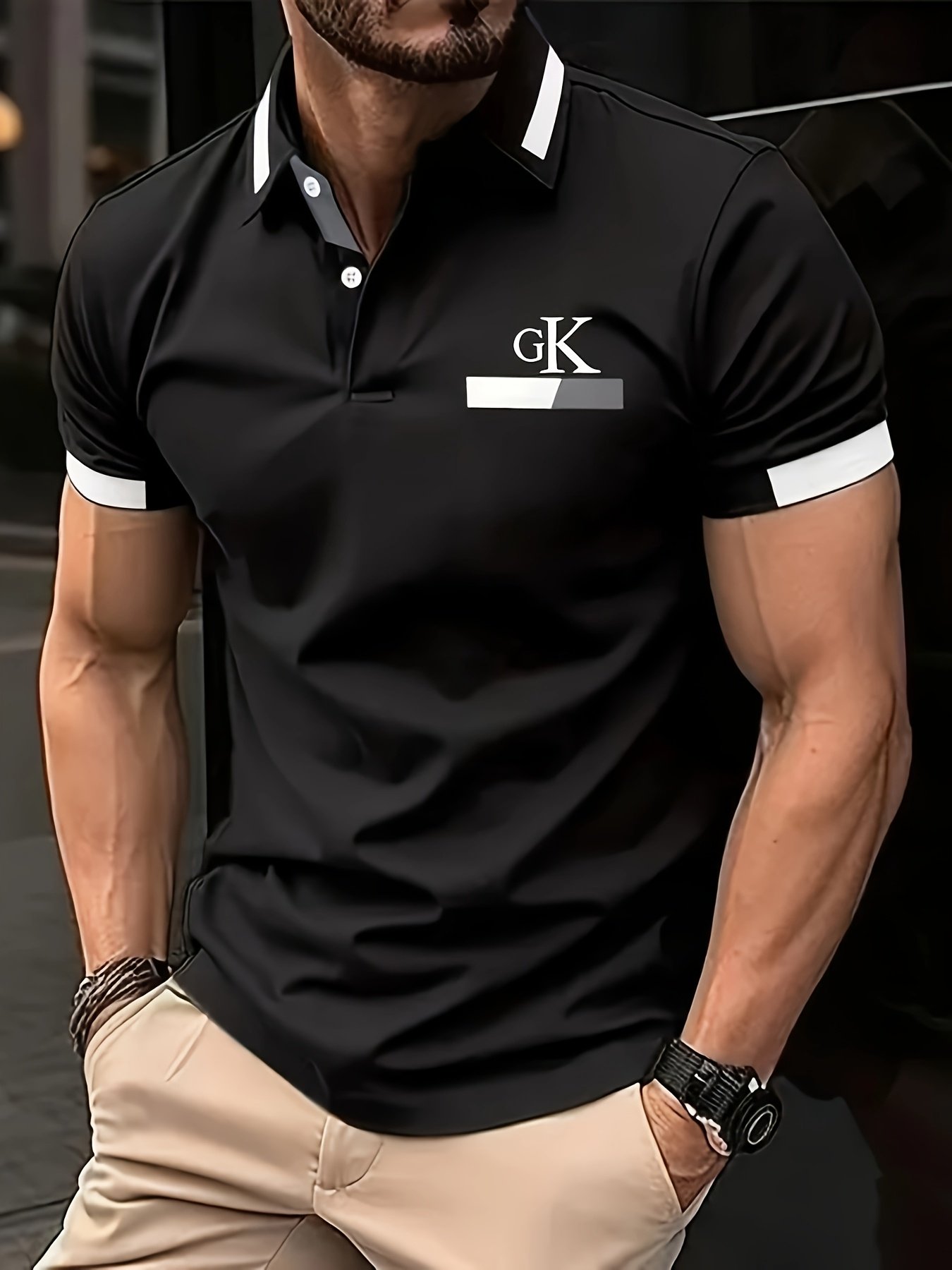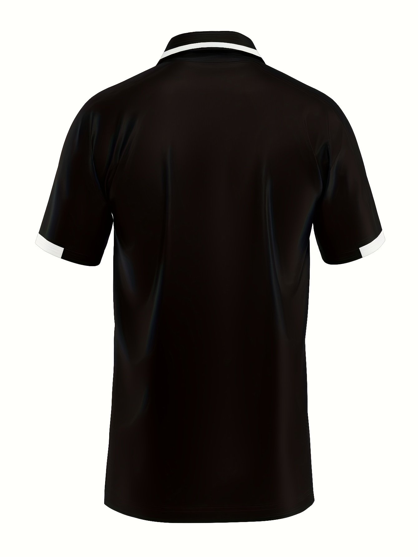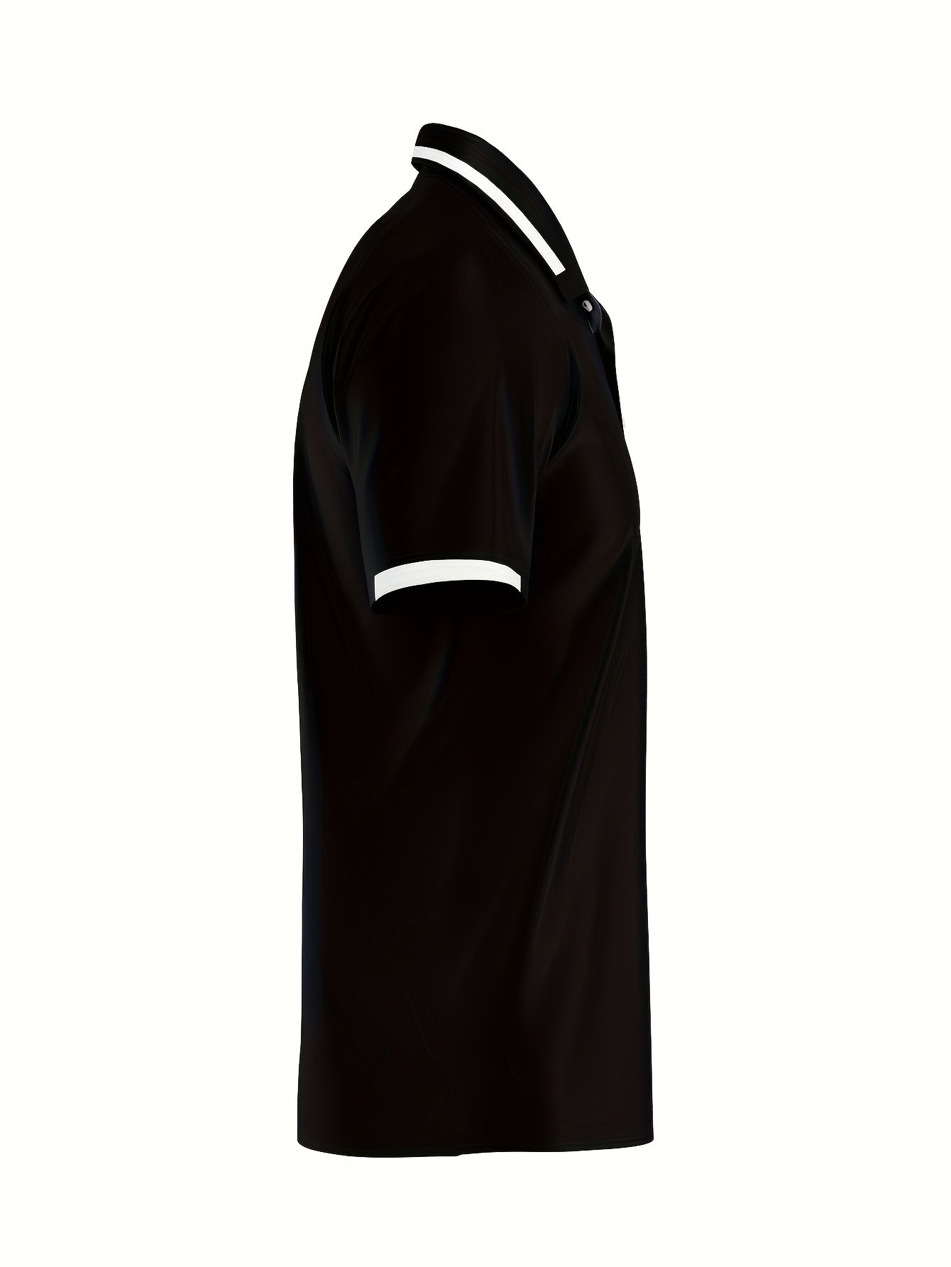 T-shirt décontracté à manches courtes pour homme – Noir avec impression de lettres blanches, tissu en polyester respirant, coupe régulière, col boutonné, léger et élégant pour un look décontracté, t-shirt de tous les jours | Tenue décontractée élégante | Tissu durable, t-shirt