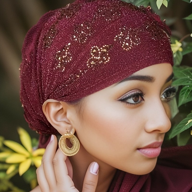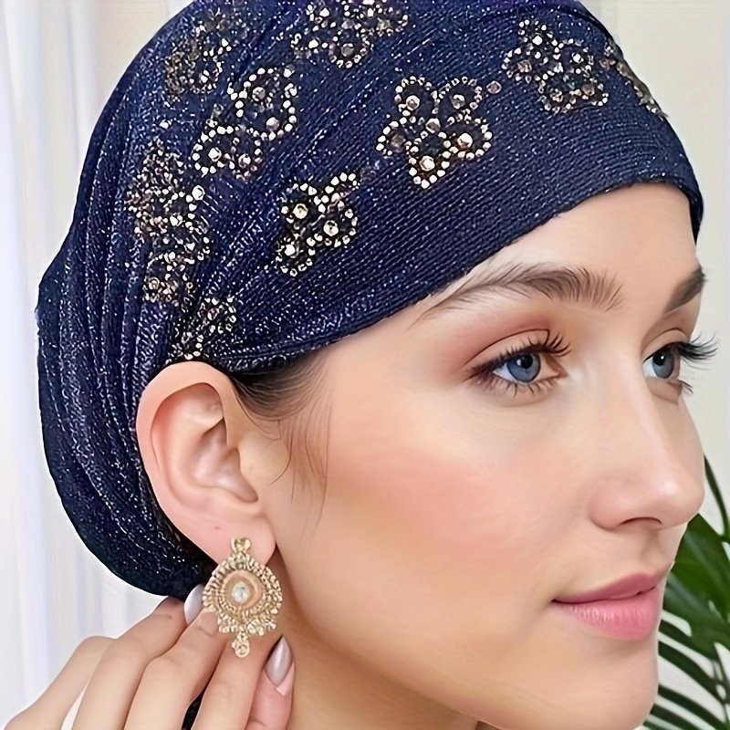 Turban Élégant pour Femmes avec Fleur de Prunier Scintillante en Strass – Élastique, Confortable pour les Célébrations de Ramadan & Eid