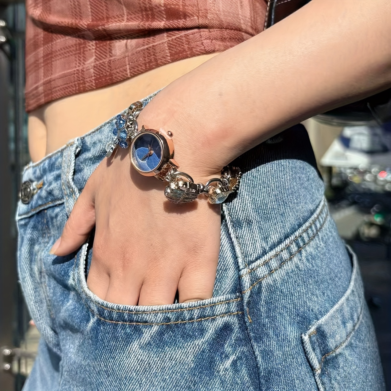 Un bracelet de style Ins bleu haut de gamme, unique et représentant une niche