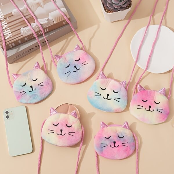 4 avis pour Un design adorable avec des chats timides, fabriqué à partir d’un tissu en peluche multicolore teinté aléatoirement. Ce sac à bandoulière élégant et portable est parfait pour l’hiver, idéal pour ranger du rouge à lèvres et des câbles de charge.