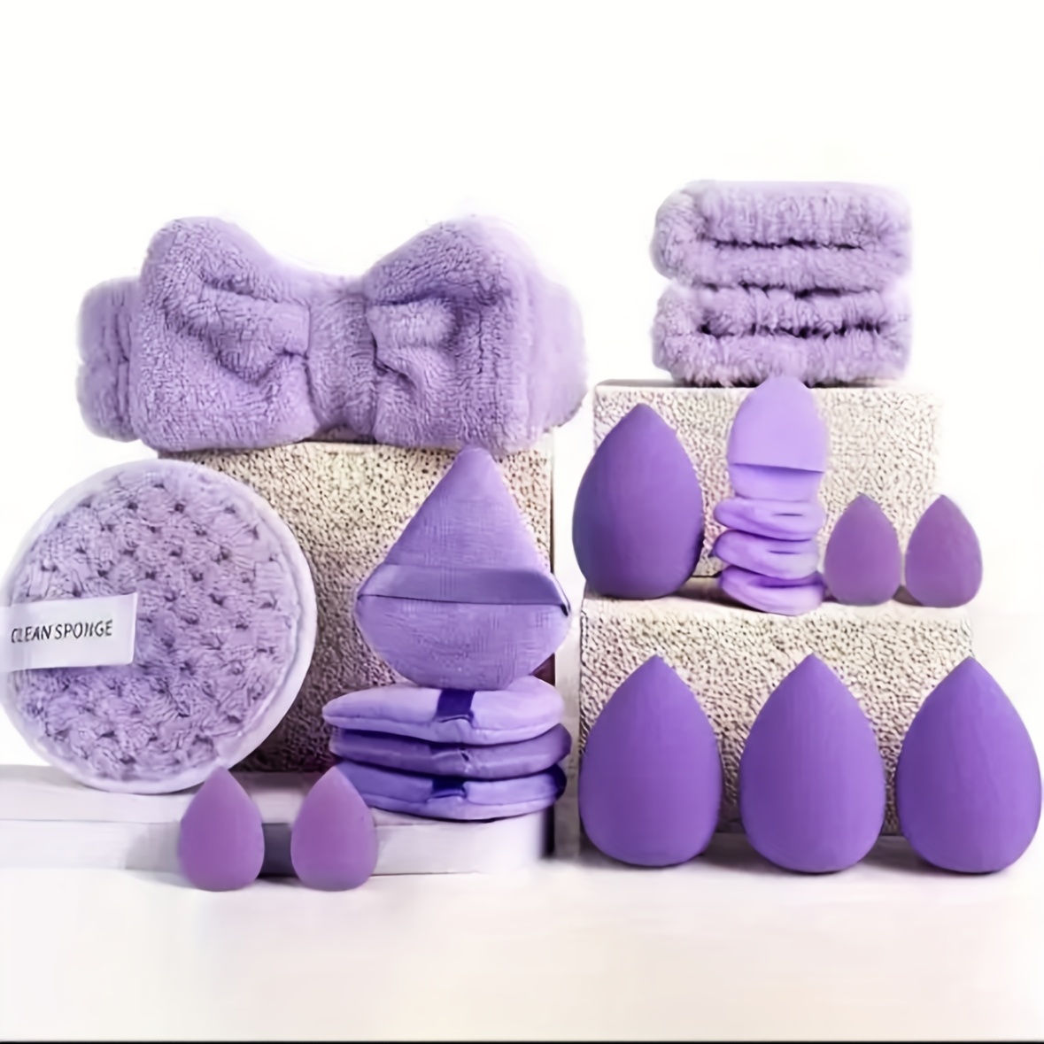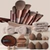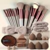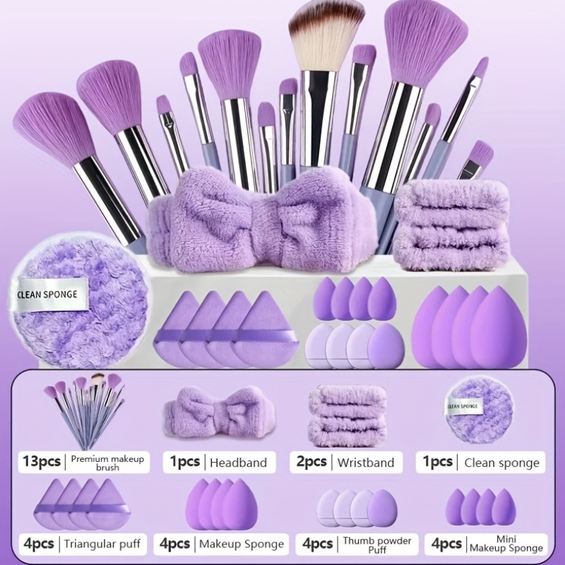 Ensemble amélioré de pinceaux de maquillage + nettoyage du visage marron, Ensemble amélioré de pinceaux de maquillage + nettoyage du visage violet