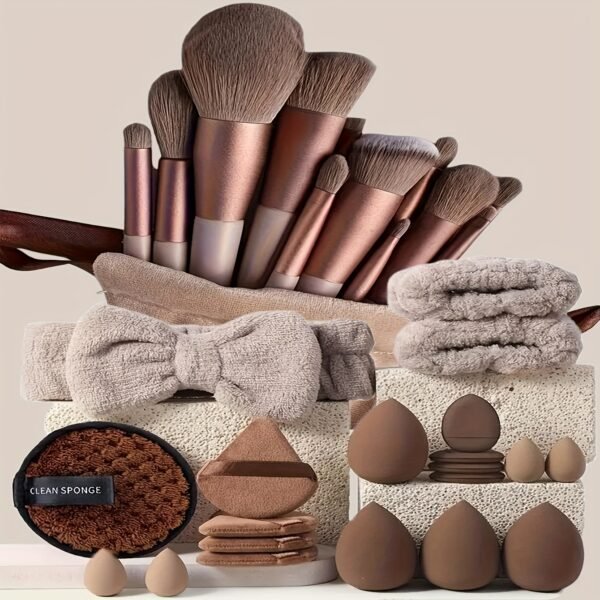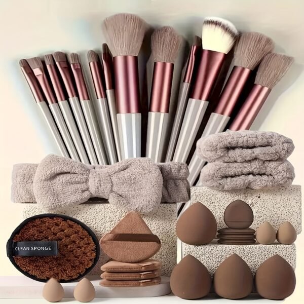 Un ensemble complet de 33 outils de beauté pour le lavage et le Cosmétique, parfait pour les voyages. Un coffret cadeau idéal pour la fête des mères et le meilleur choix pour Noël.