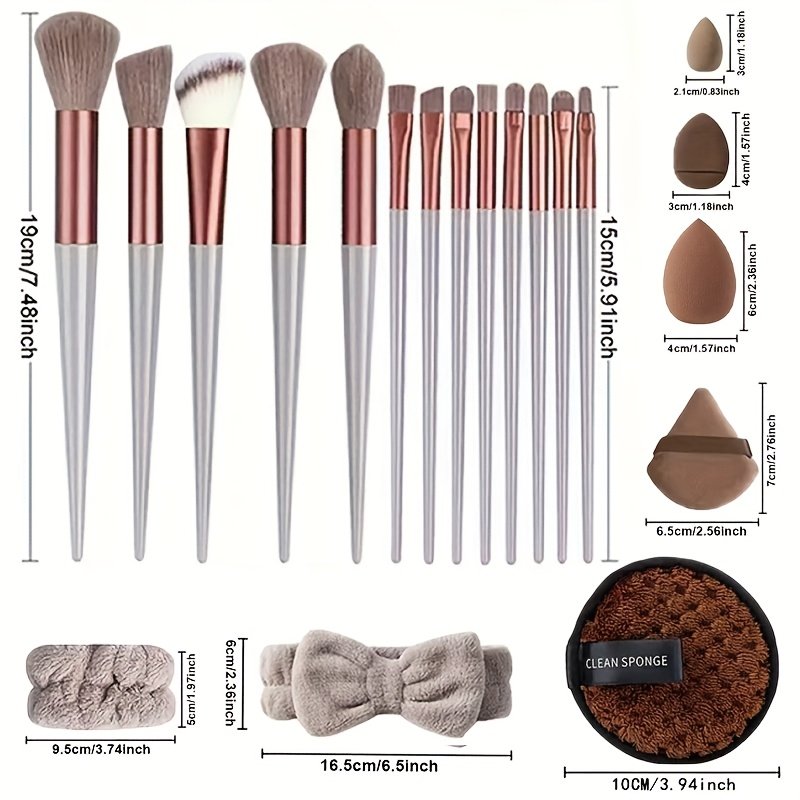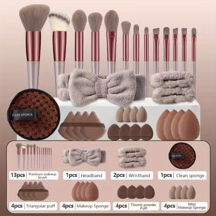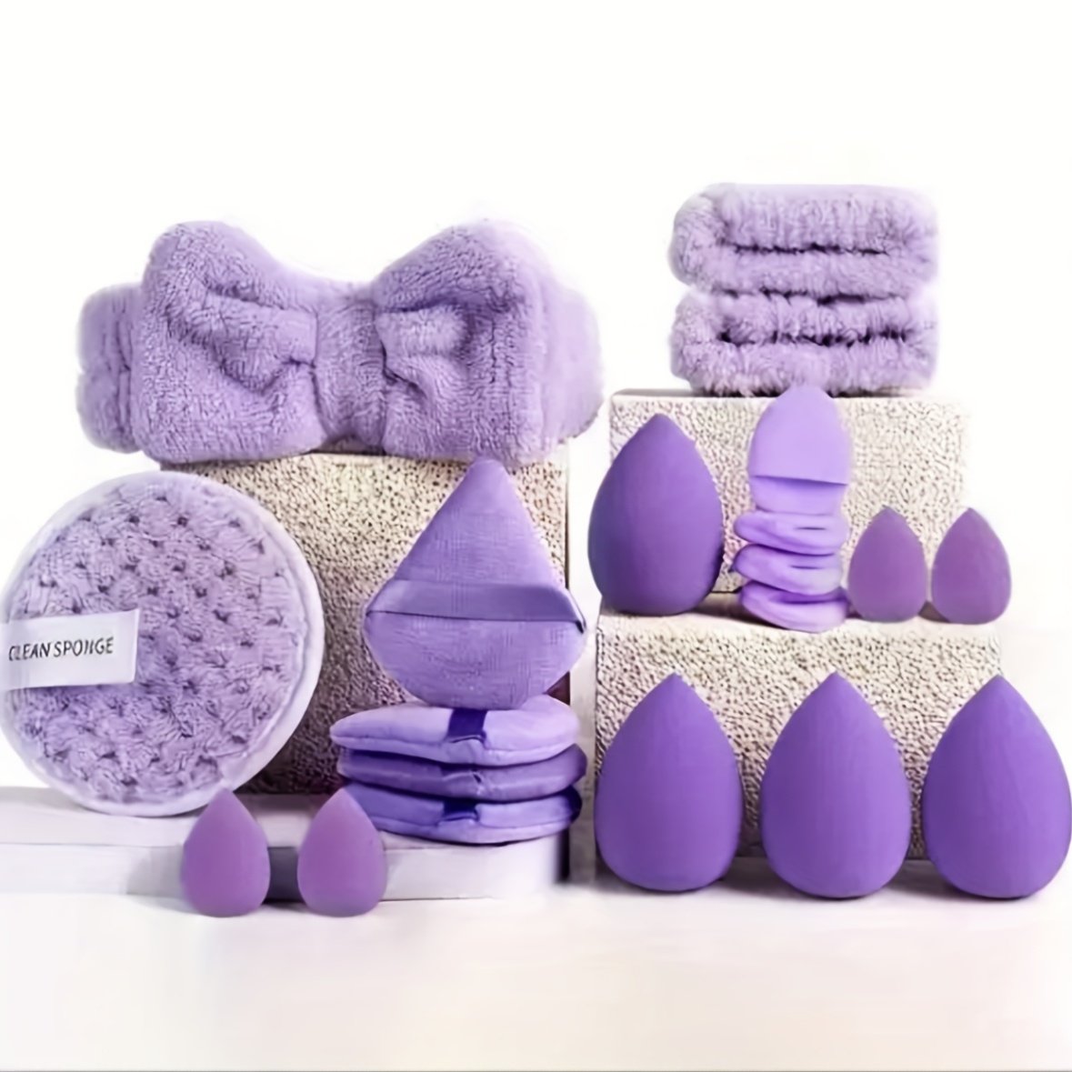 Ensemble amélioré de pinceaux de maquillage + nettoyage du visage marron, Ensemble amélioré de pinceaux de maquillage + nettoyage du visage violet