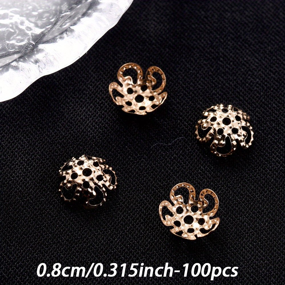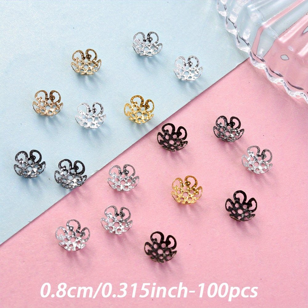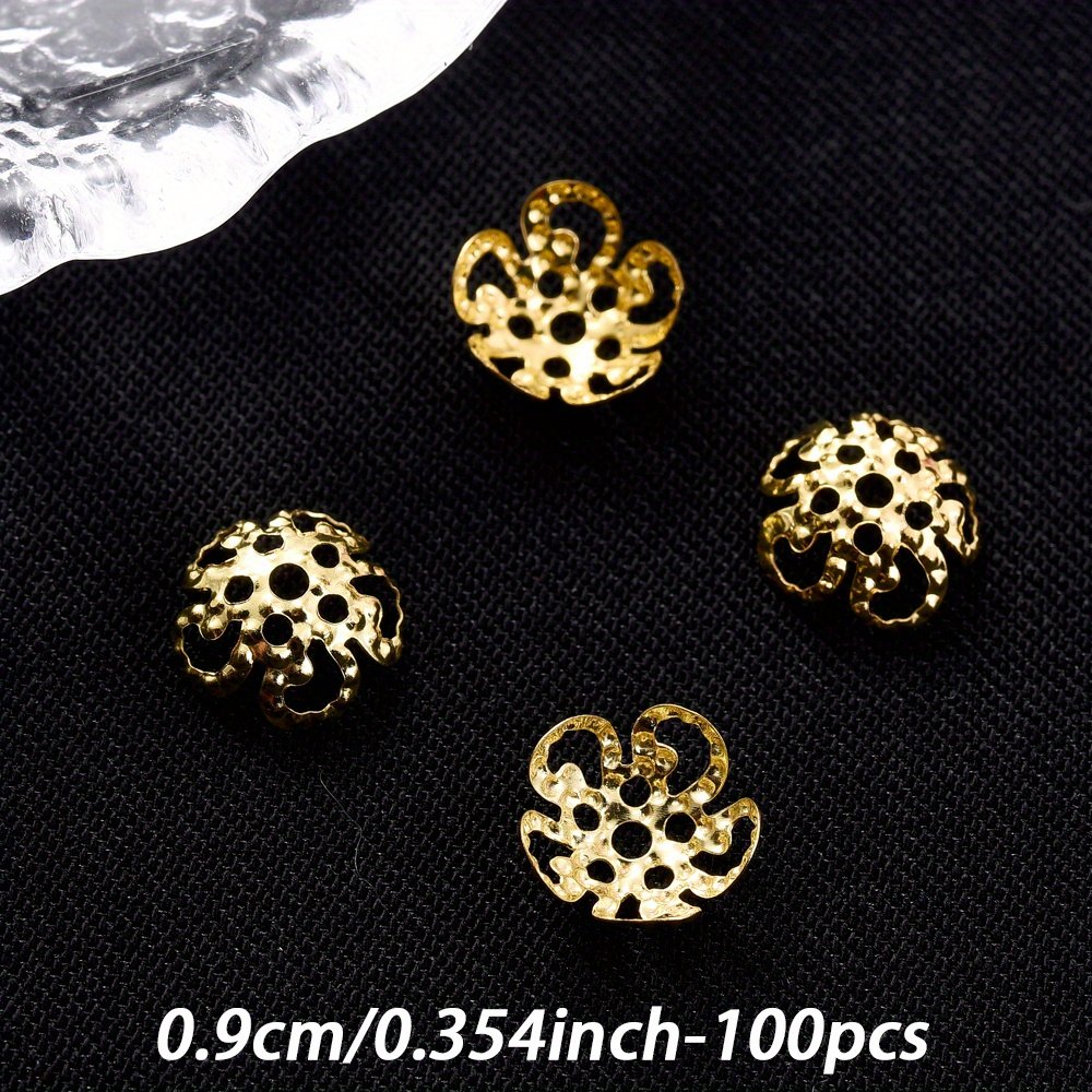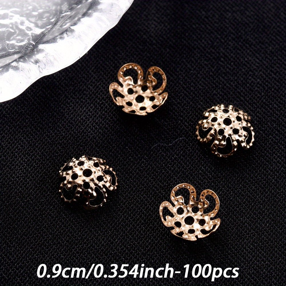 Un ensemble de 100 capuchons d'extrémité de perles en forme de fleur creuse multicolores mesurant 8/9 mm, adaptés aux projets tels que les boucles d'oreilles, les colliers, les pendentifs, les s de cheville et autres fournitures de fabrication de bijoux