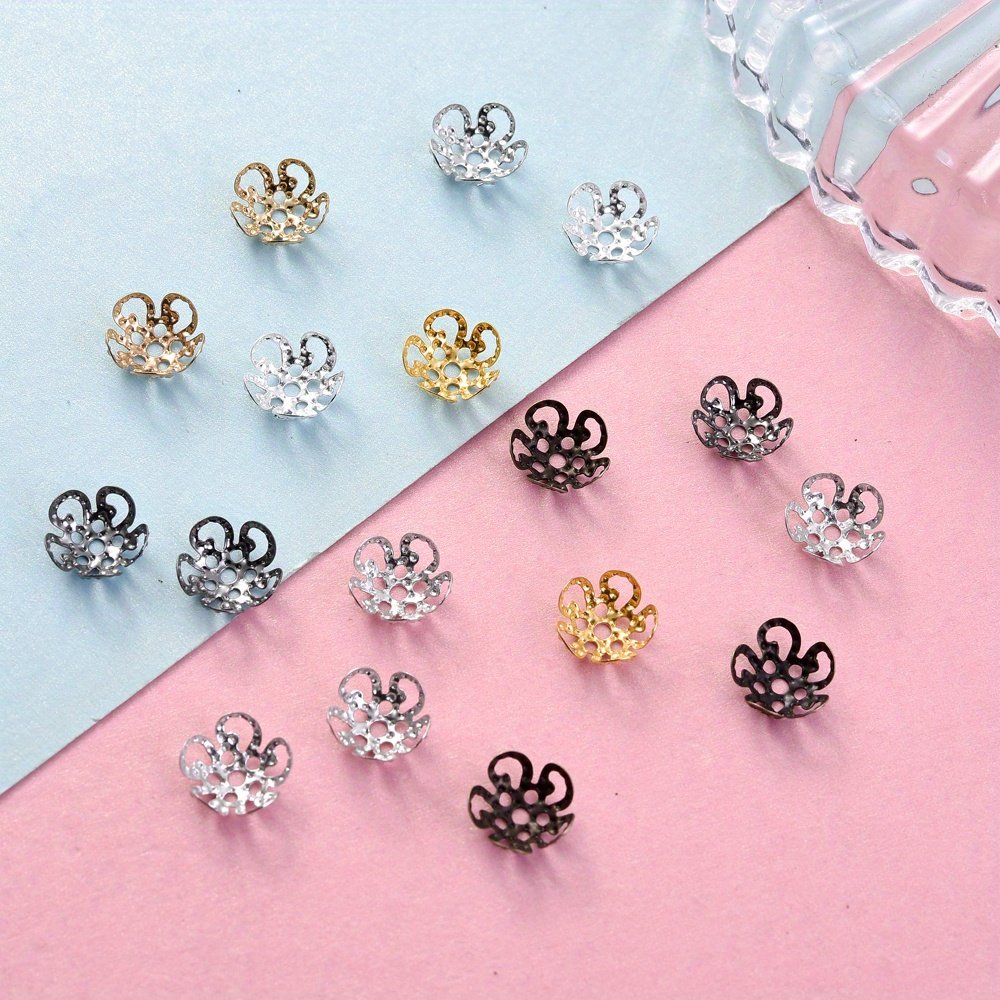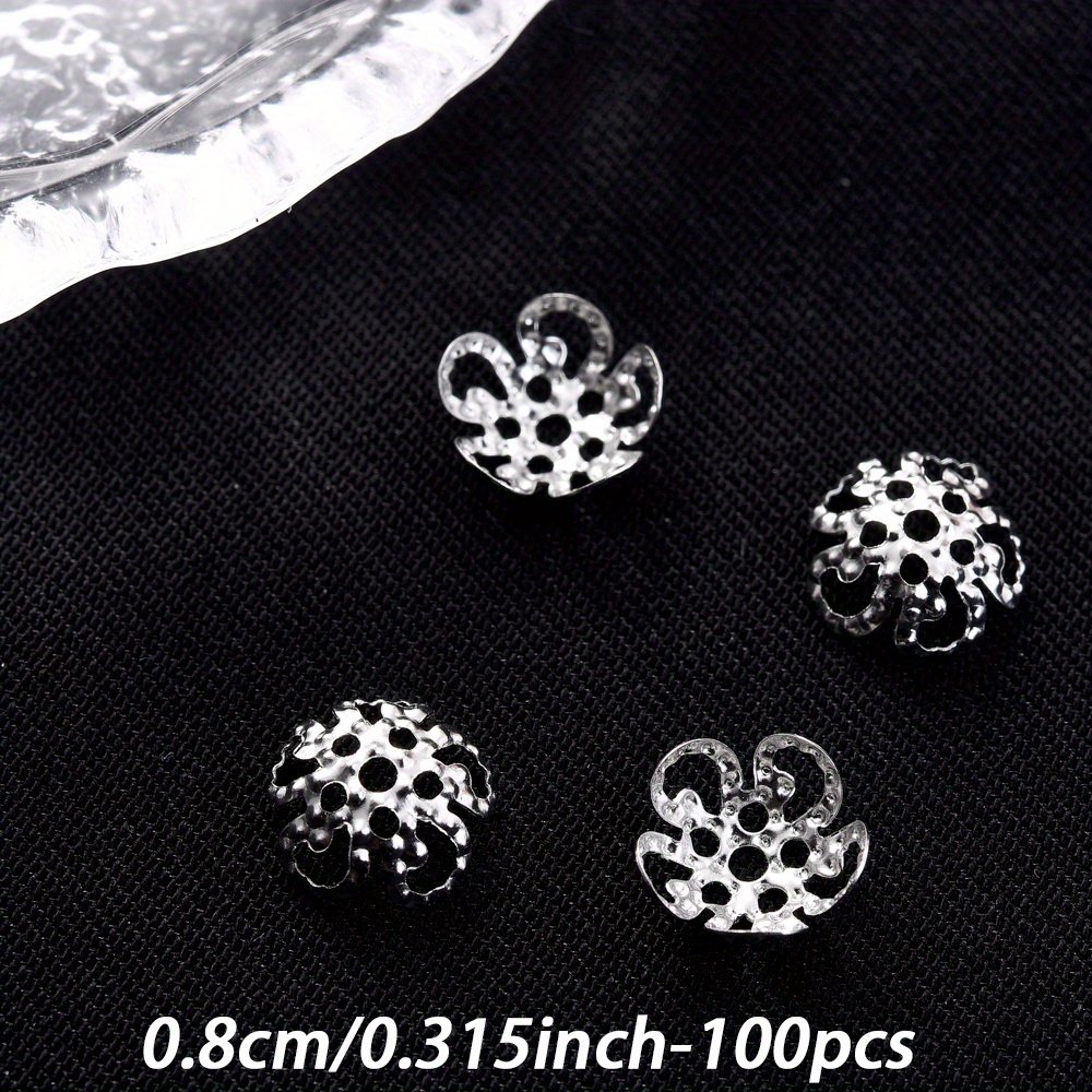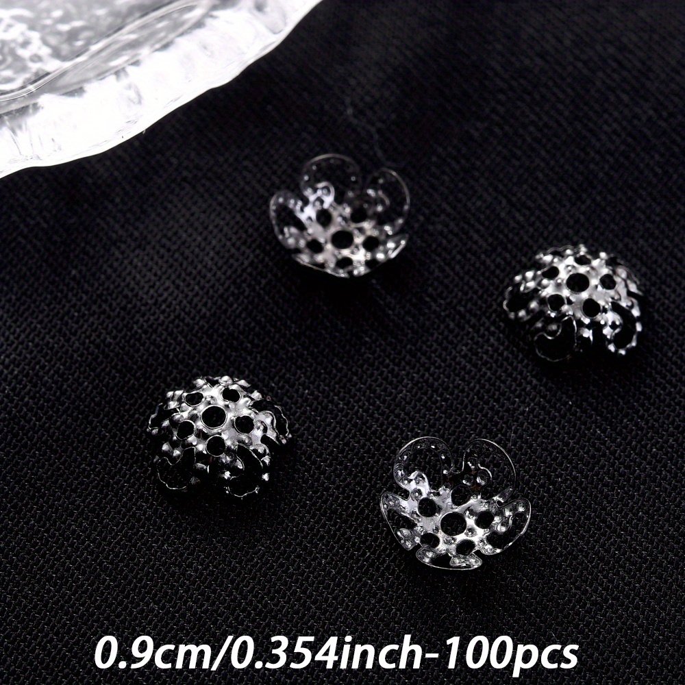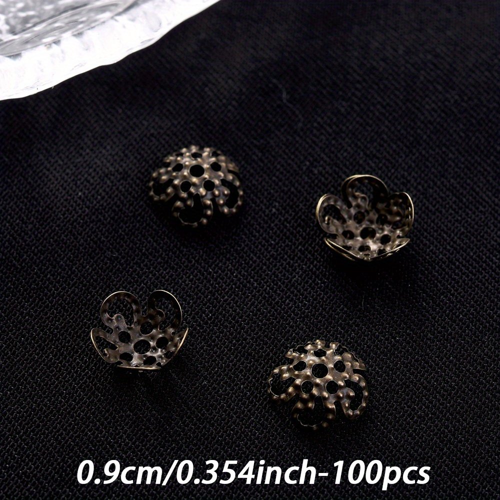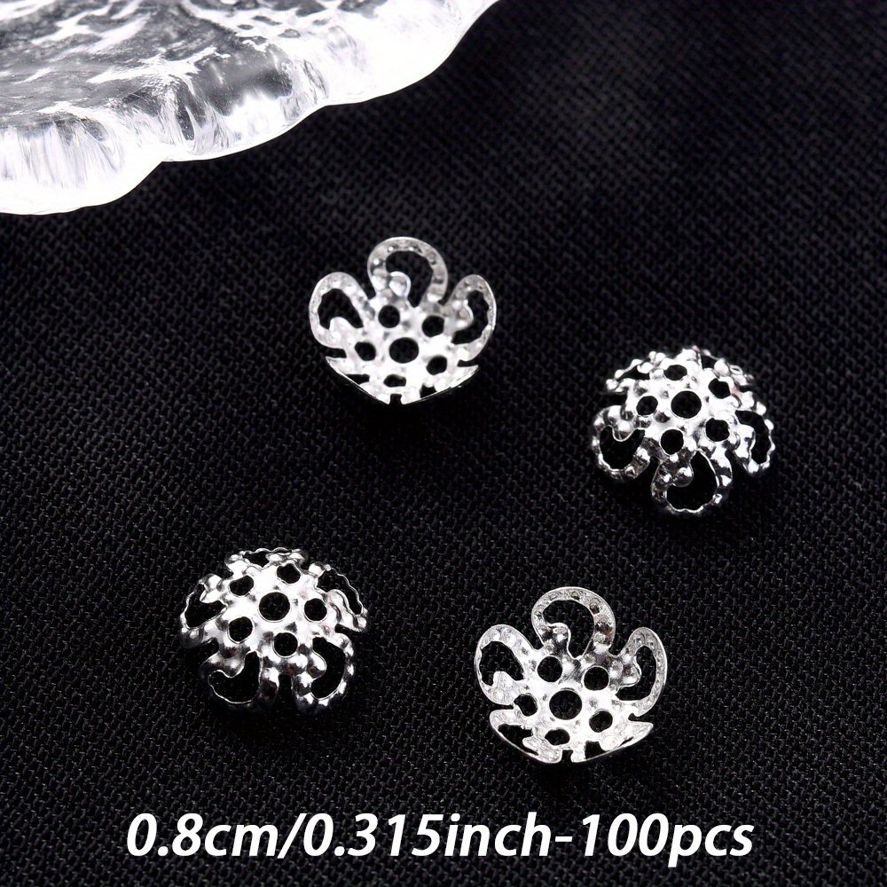 Un ensemble de 100 capuchons d'extrémité de perles en forme de fleur creuse multicolores mesurant 8/9 mm, adaptés aux projets tels que les boucles d'oreilles, les colliers, les pendentifs, les s de cheville et autres fournitures de fabrication de bijoux