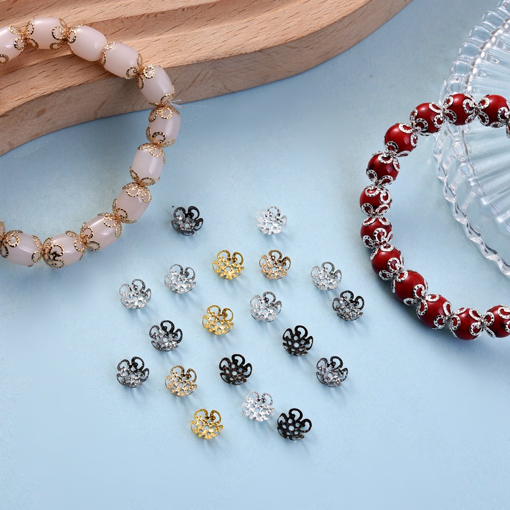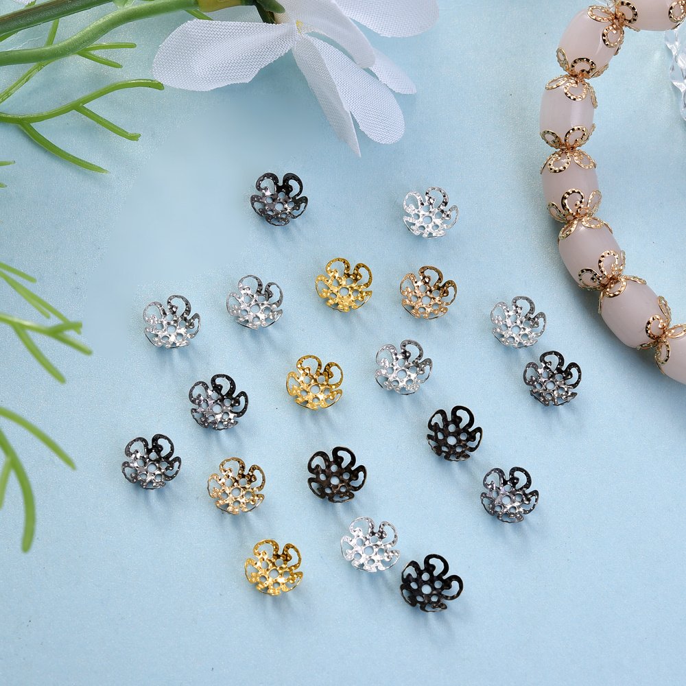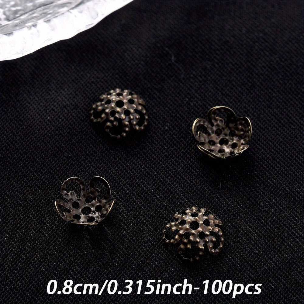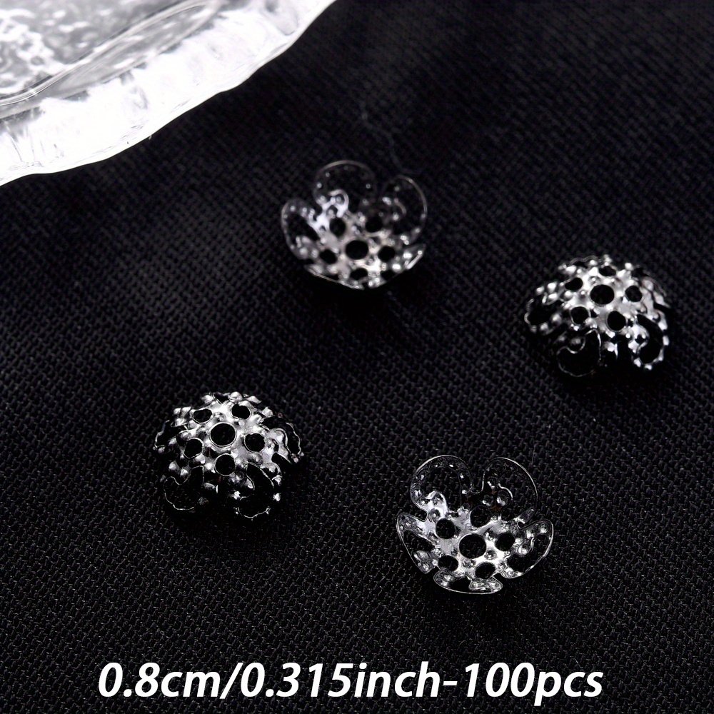 Un ensemble de 100 capuchons d'extrémité de perles en forme de fleur creuse multicolores mesurant 8/9 mm, adaptés aux projets tels que les boucles d'oreilles, les colliers, les pendentifs, les s de cheville et autres fournitures de fabrication de bijoux