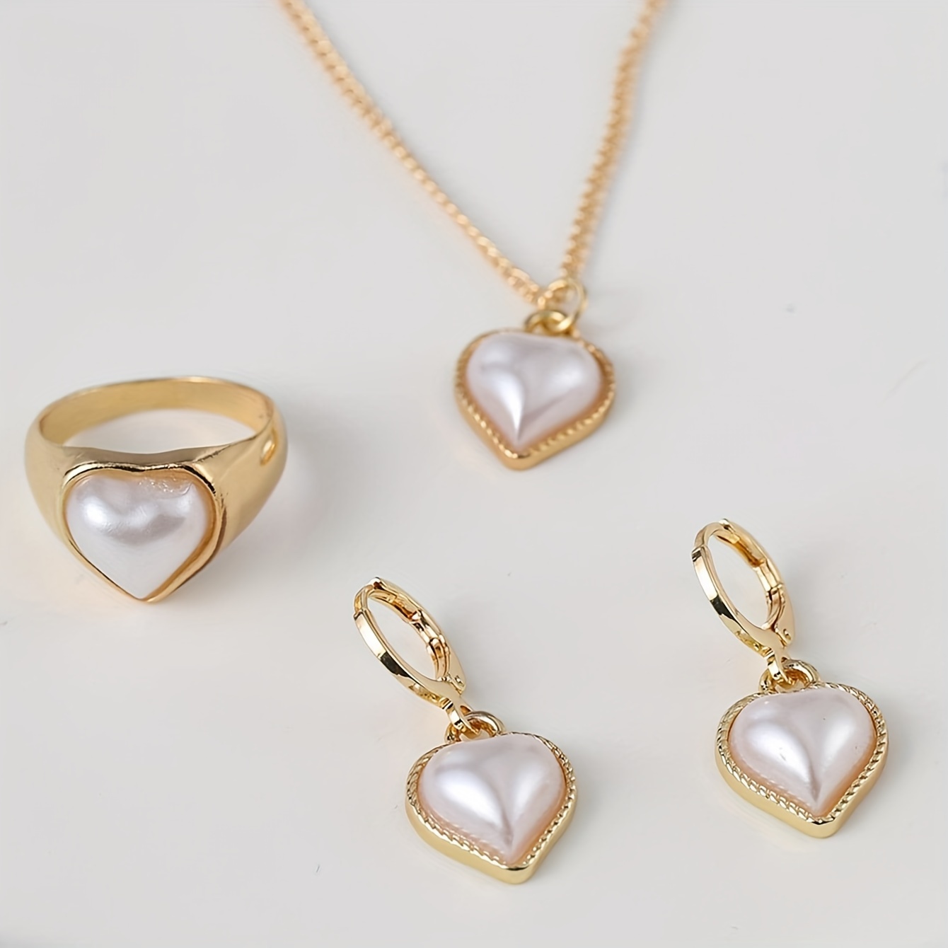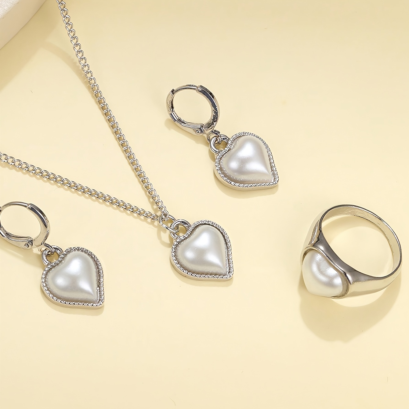 Un ensemble de 4 boucles d’oreilles, bagues et colliers simples en forme de cœur, parfait pour les cadeaux de vacances et de rendez-vous pour femmes, offrant un excellent rapport qualité-prix, idéal pour Halloween, Noël, la Saint-Valentin et la fête des mères.