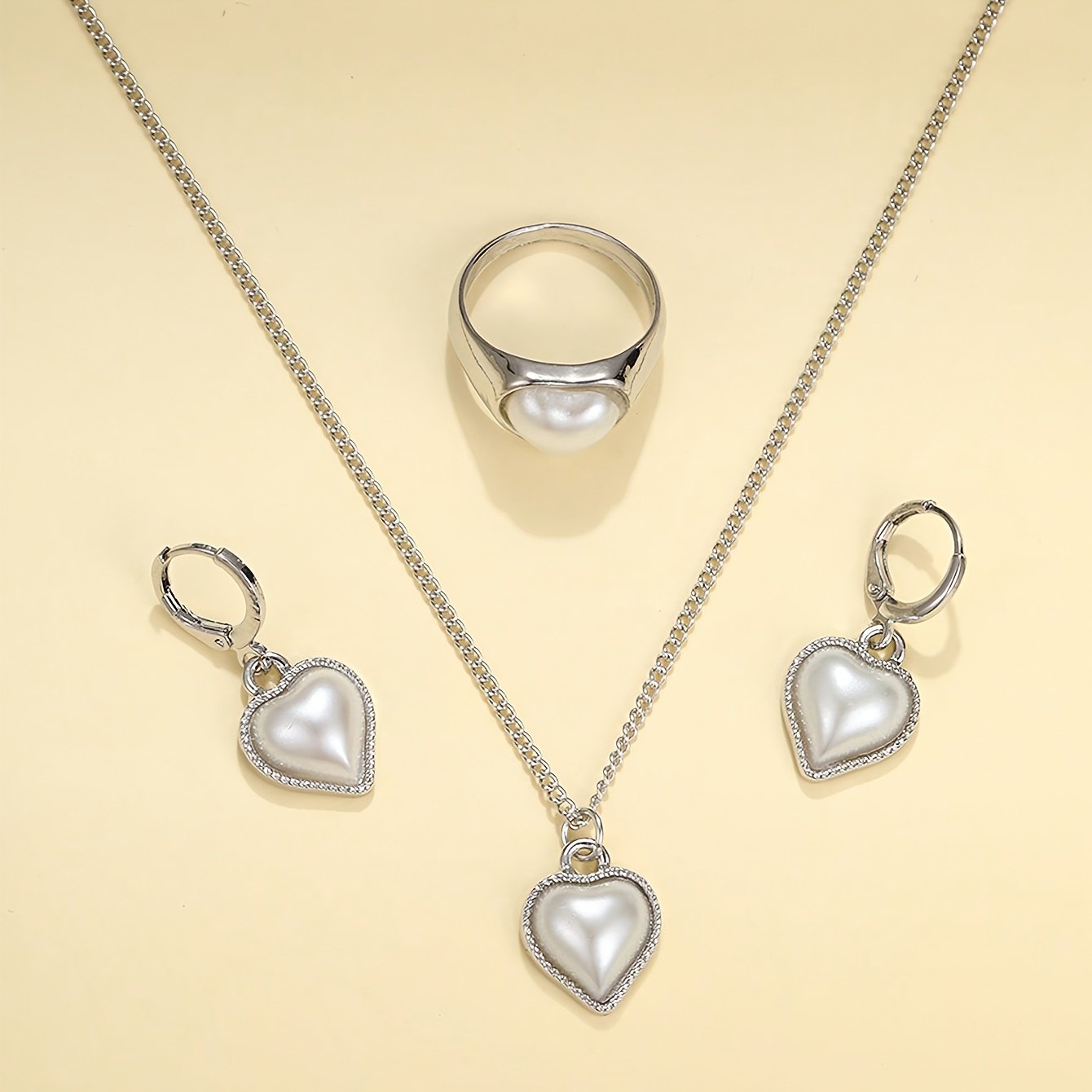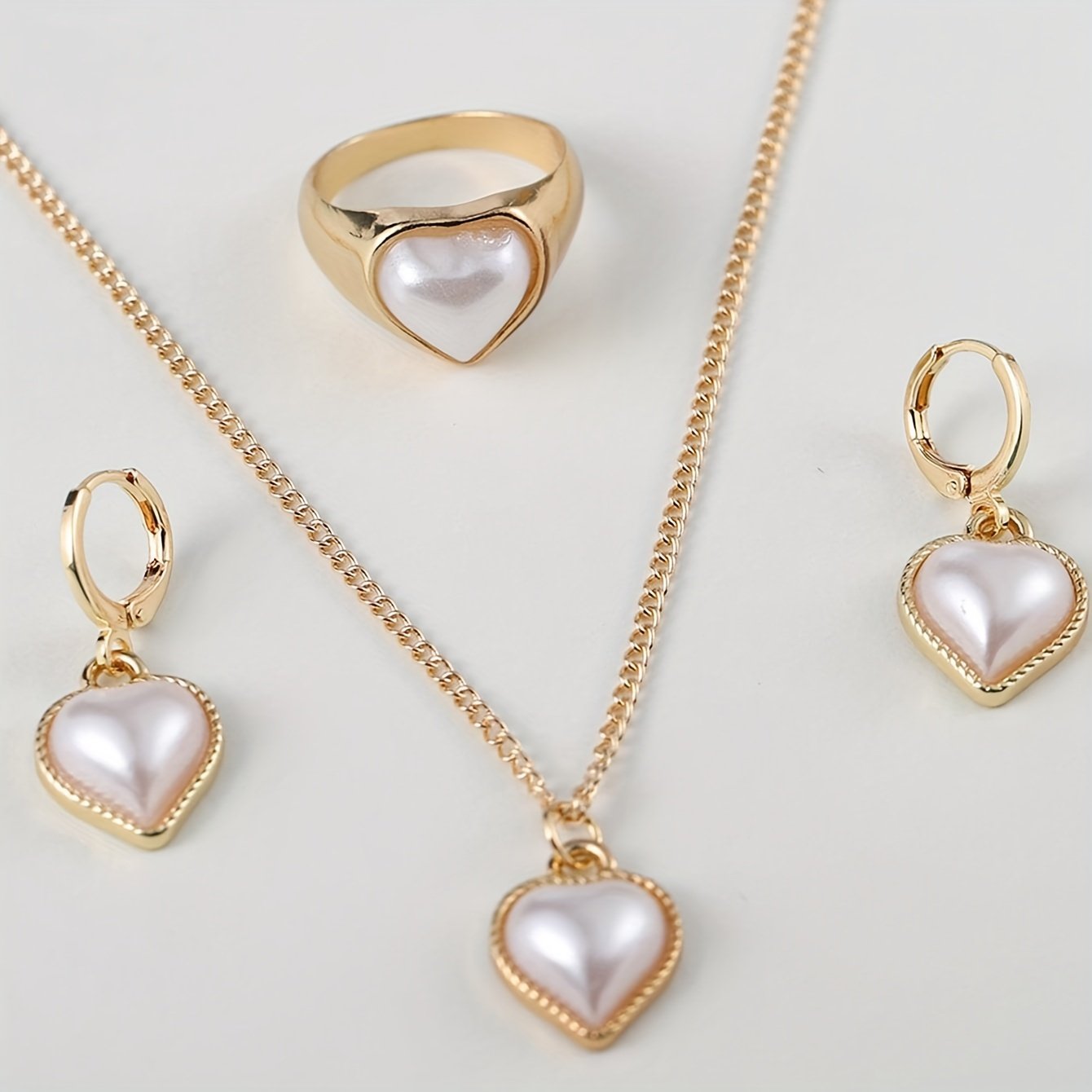 Un ensemble de 4 boucles d’oreilles, bagues et colliers simples en forme de cœur, parfait pour les cadeaux de vacances et de rendez-vous pour femmes, offrant un excellent rapport qualité-prix, idéal pour Halloween, Noël, la Saint-Valentin et la fête des mères.