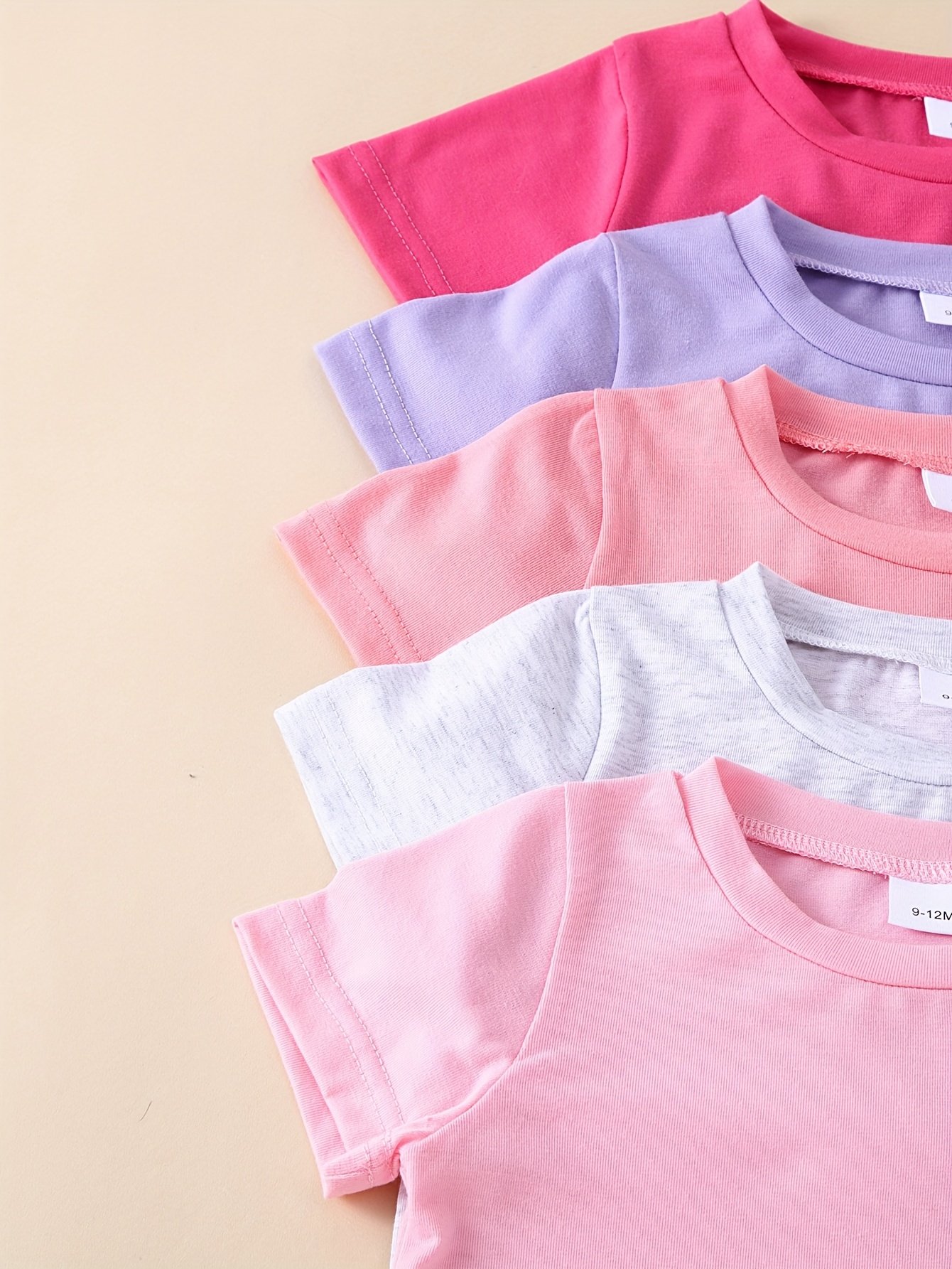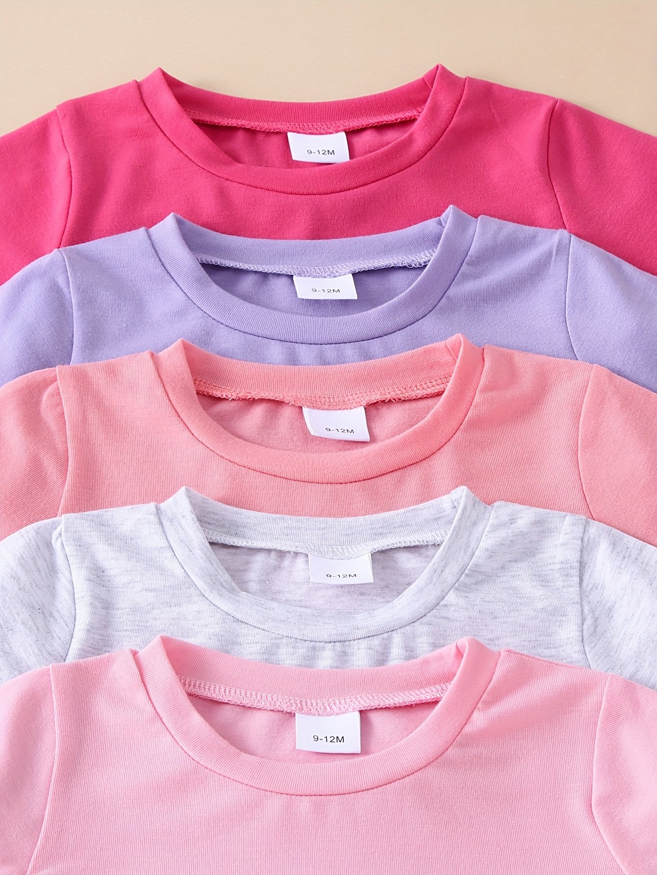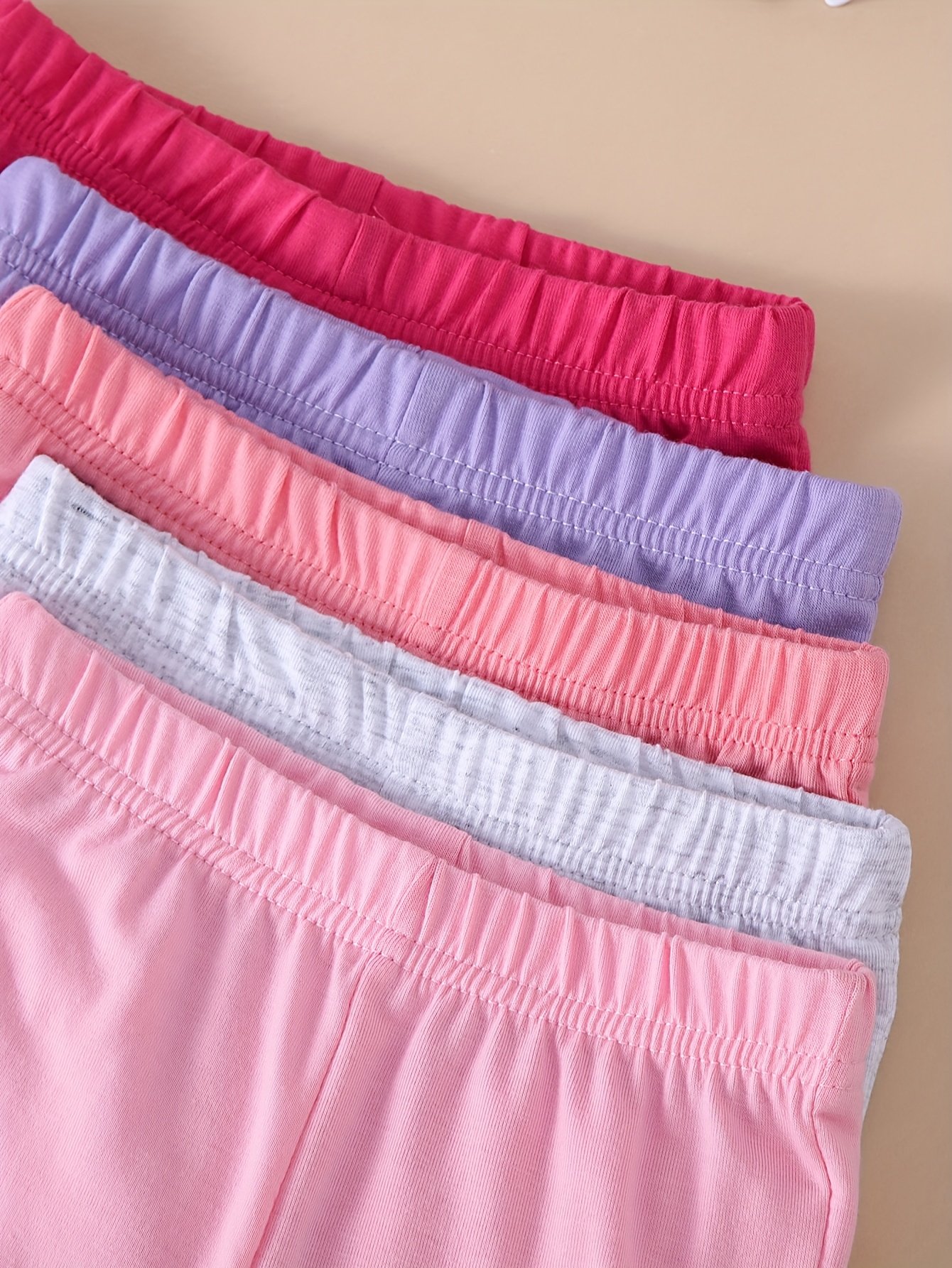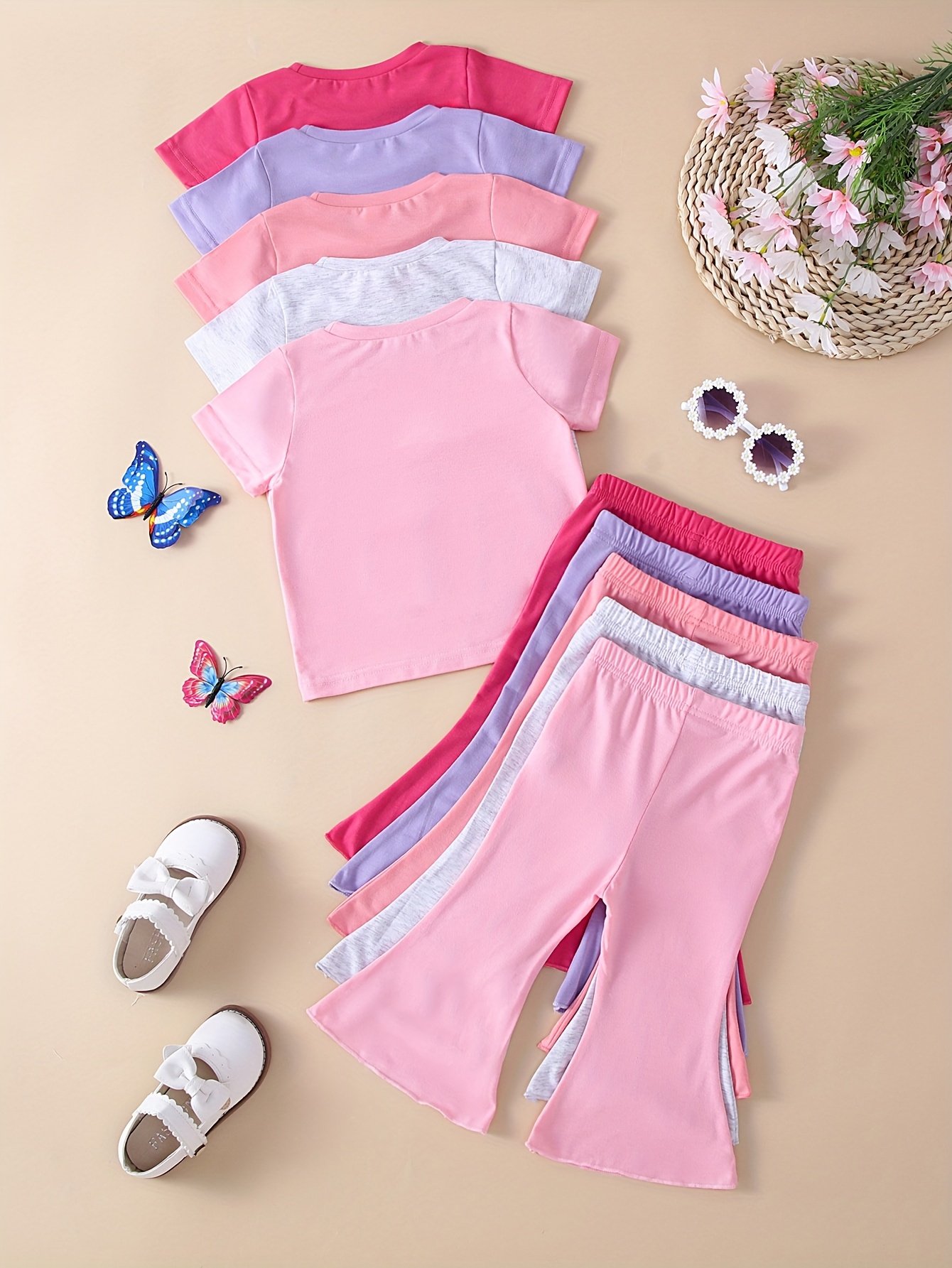 Un ensemble de dix pièces comprenant du tissu tricoté doux et confortable, des hauts à manches courtes de couleur unie et des pantalons longs évasés pour bébés et jeunes enfants