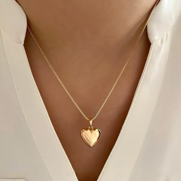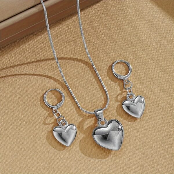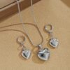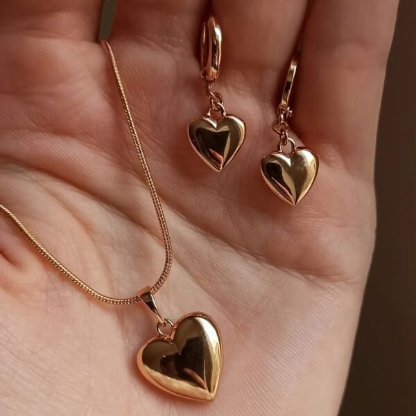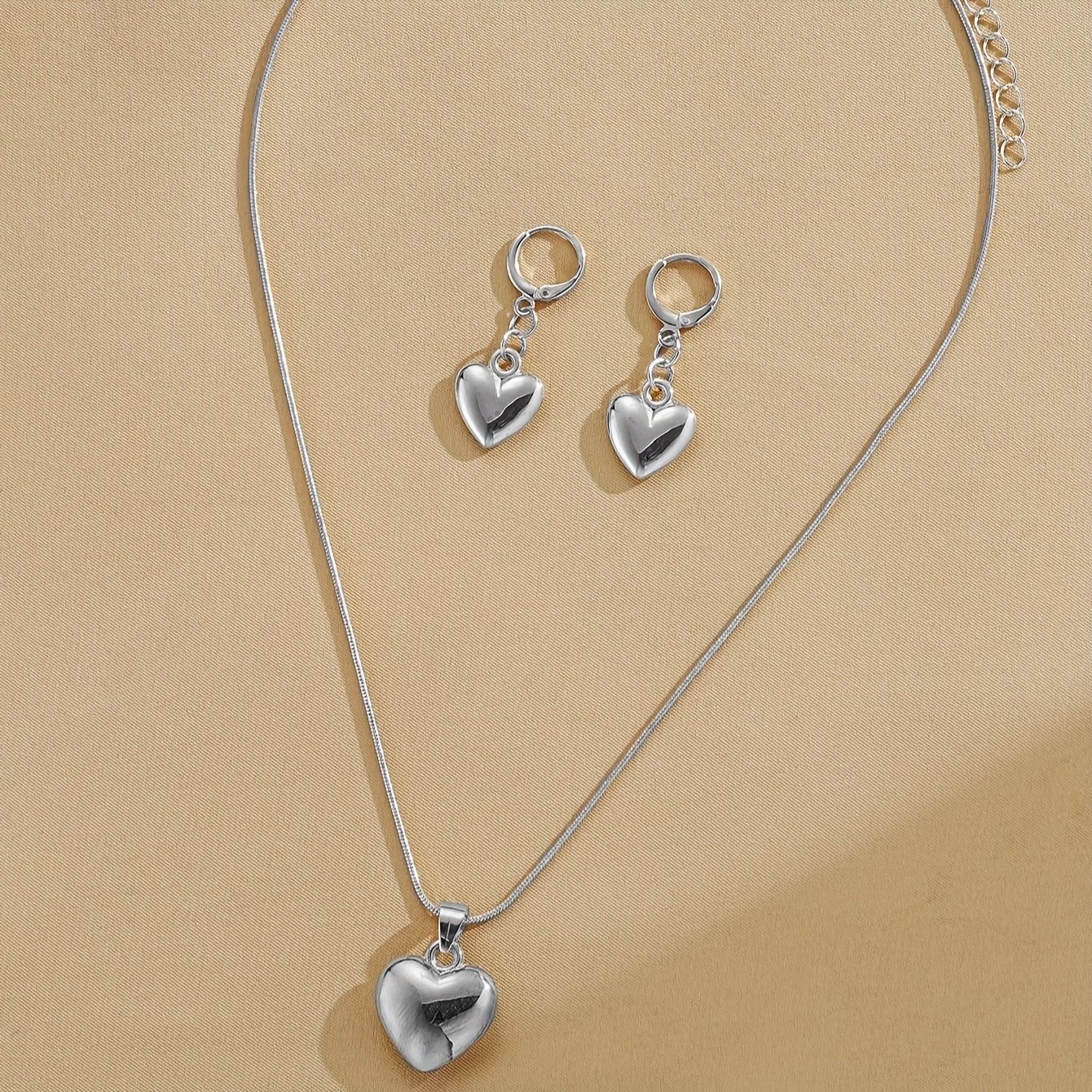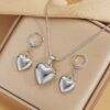 Un ensemble de trois colliers et boucles d’oreilles pendentifs en forme de cœur, élégants et minimalistes, parfaits pour les fêtes ou au quotidien.