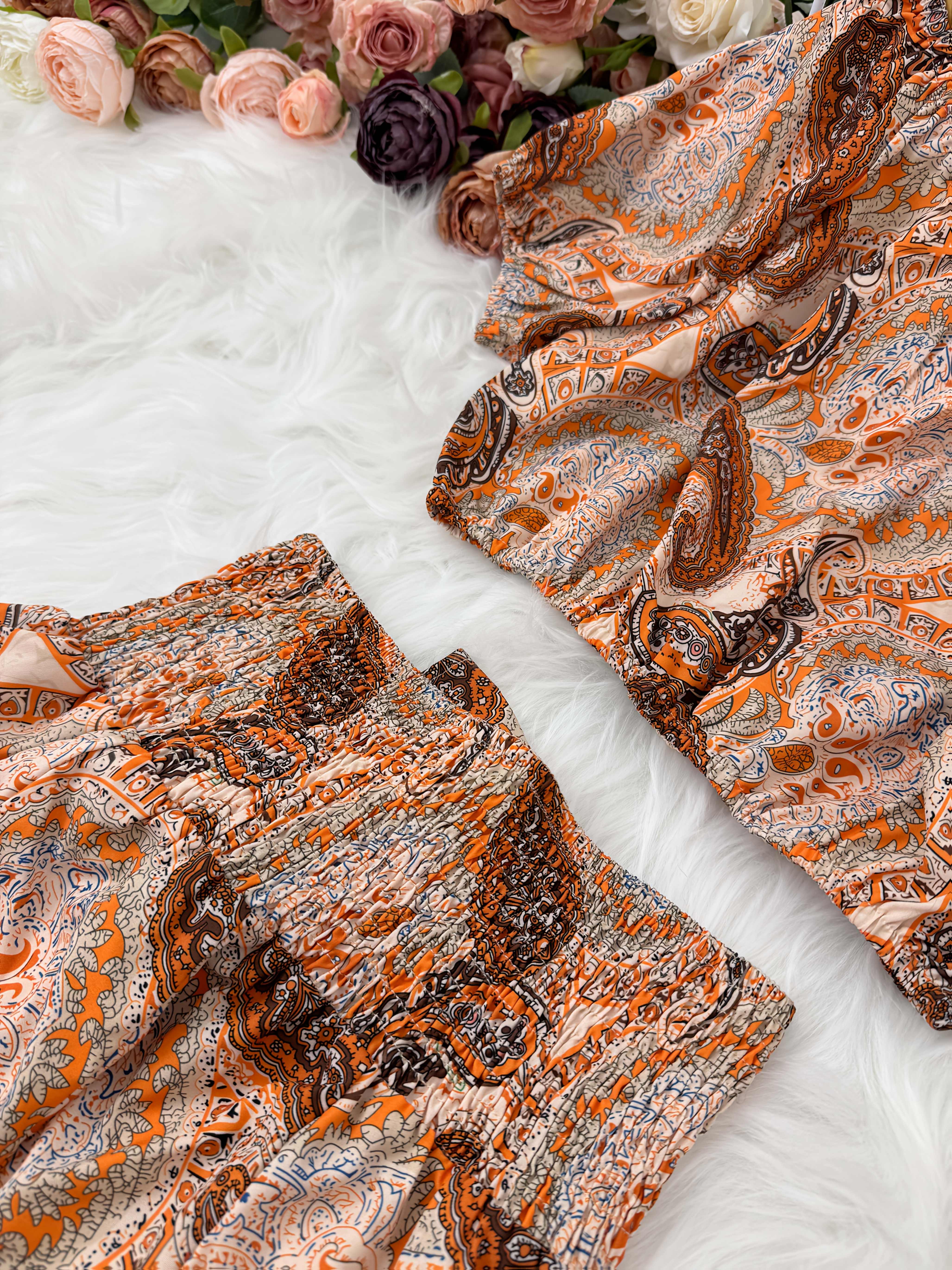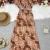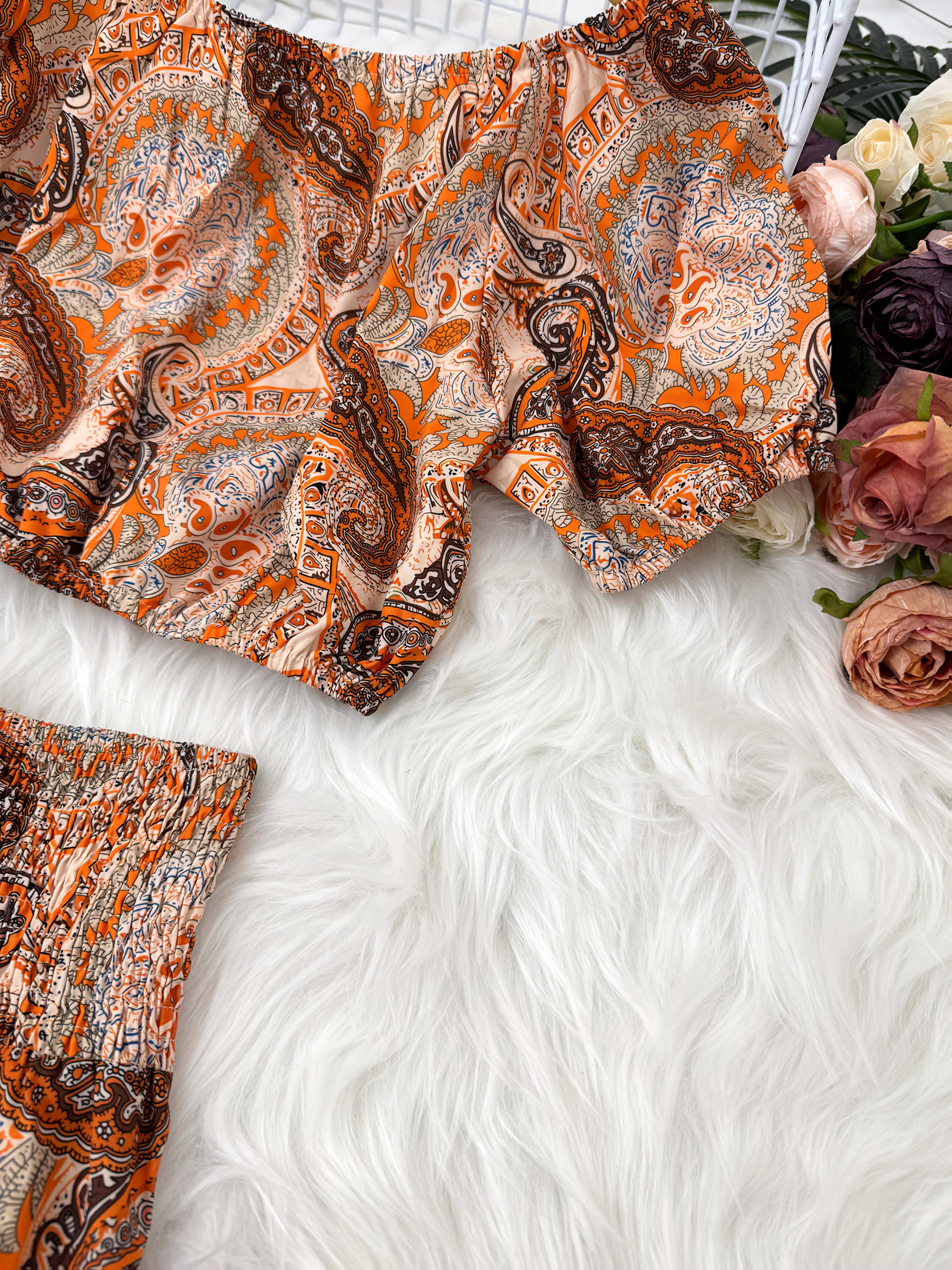 Un ensemble d’été style vacances à la plage avec manches bouffantes
