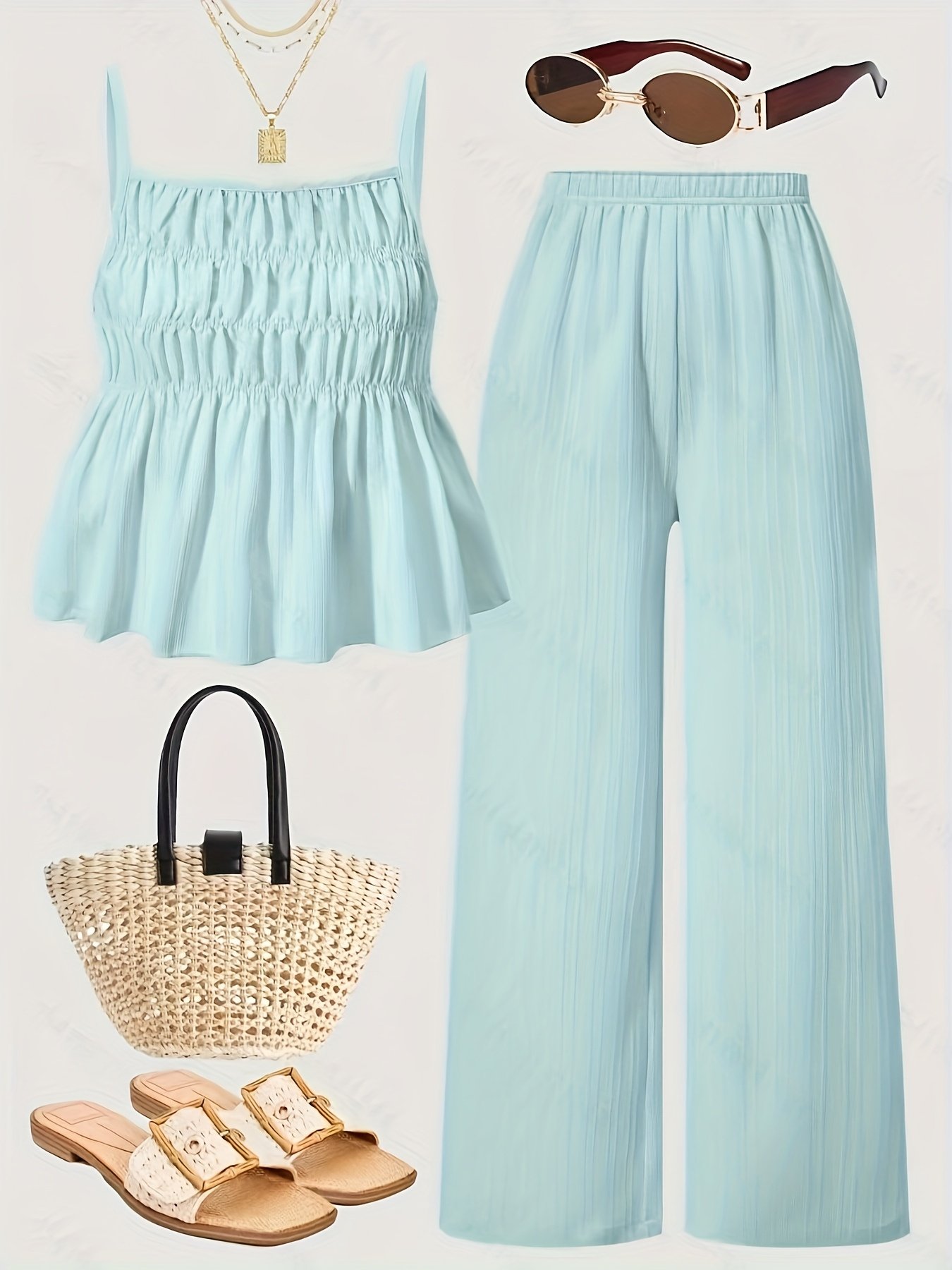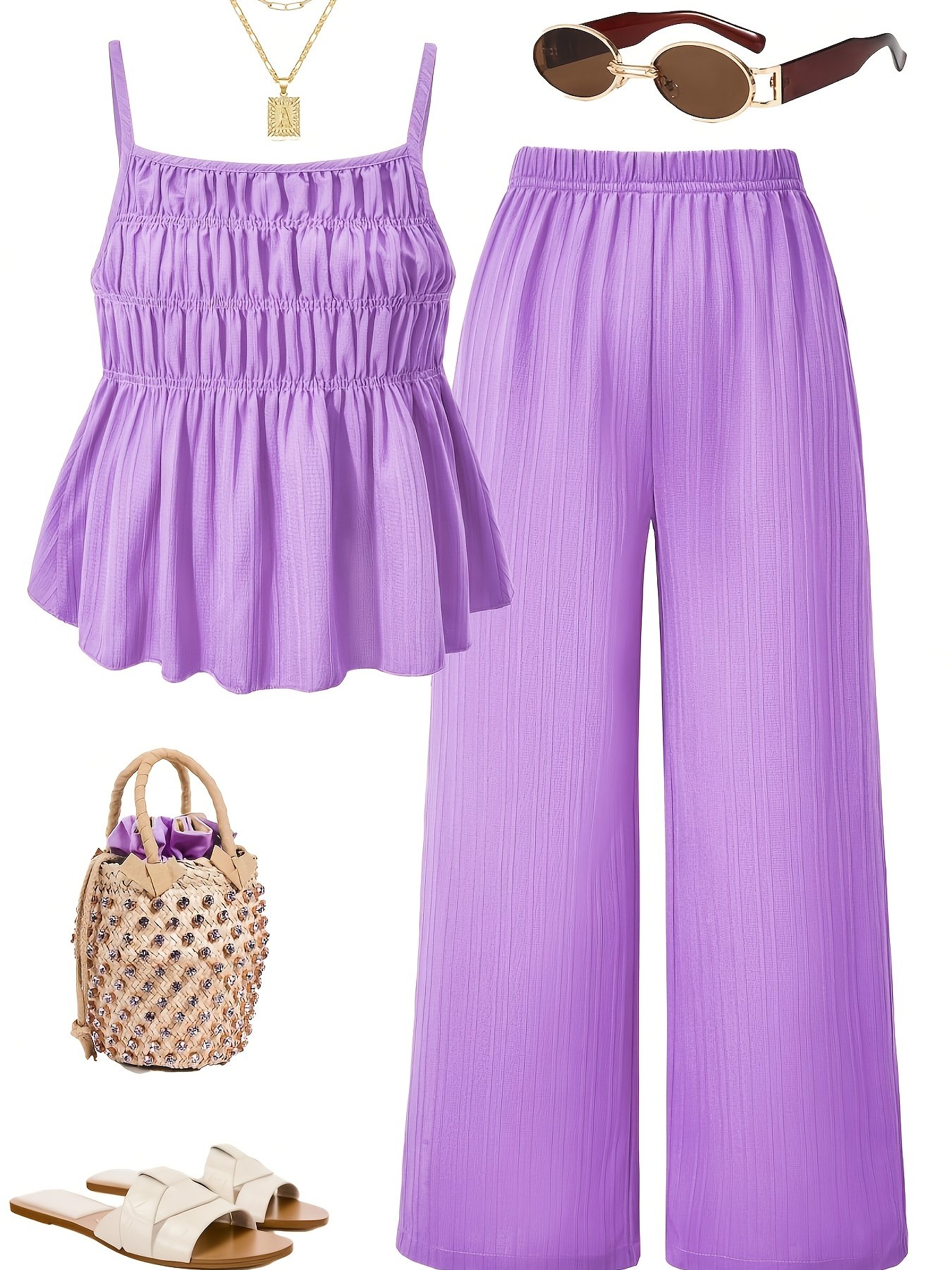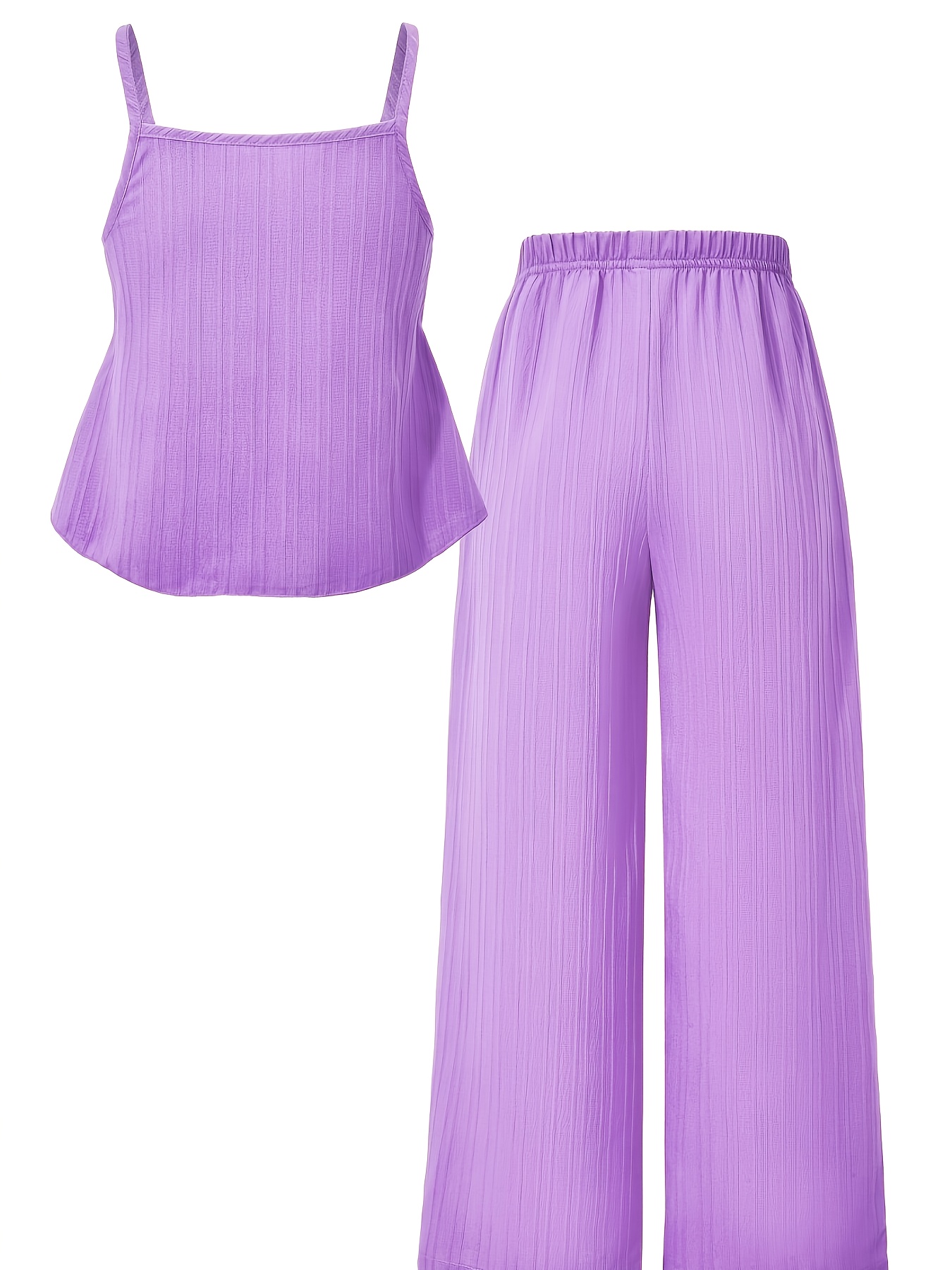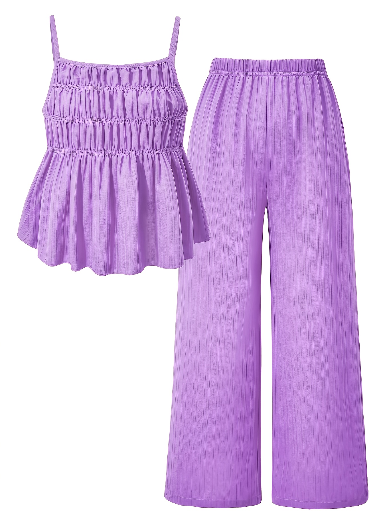 Un ensemble deux pièces doux et mignon pour filles, comprenant un débardeur et un pantalon large, parfait pour les sorties à la plage, les vacances, les trajets quotidiens, les fêtes de fin d’année et les séances photo sœurs, idéal pour le printemps et l’été, pour l’extérieur.
