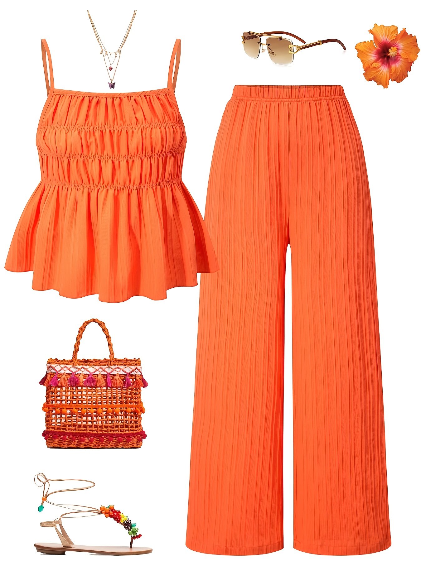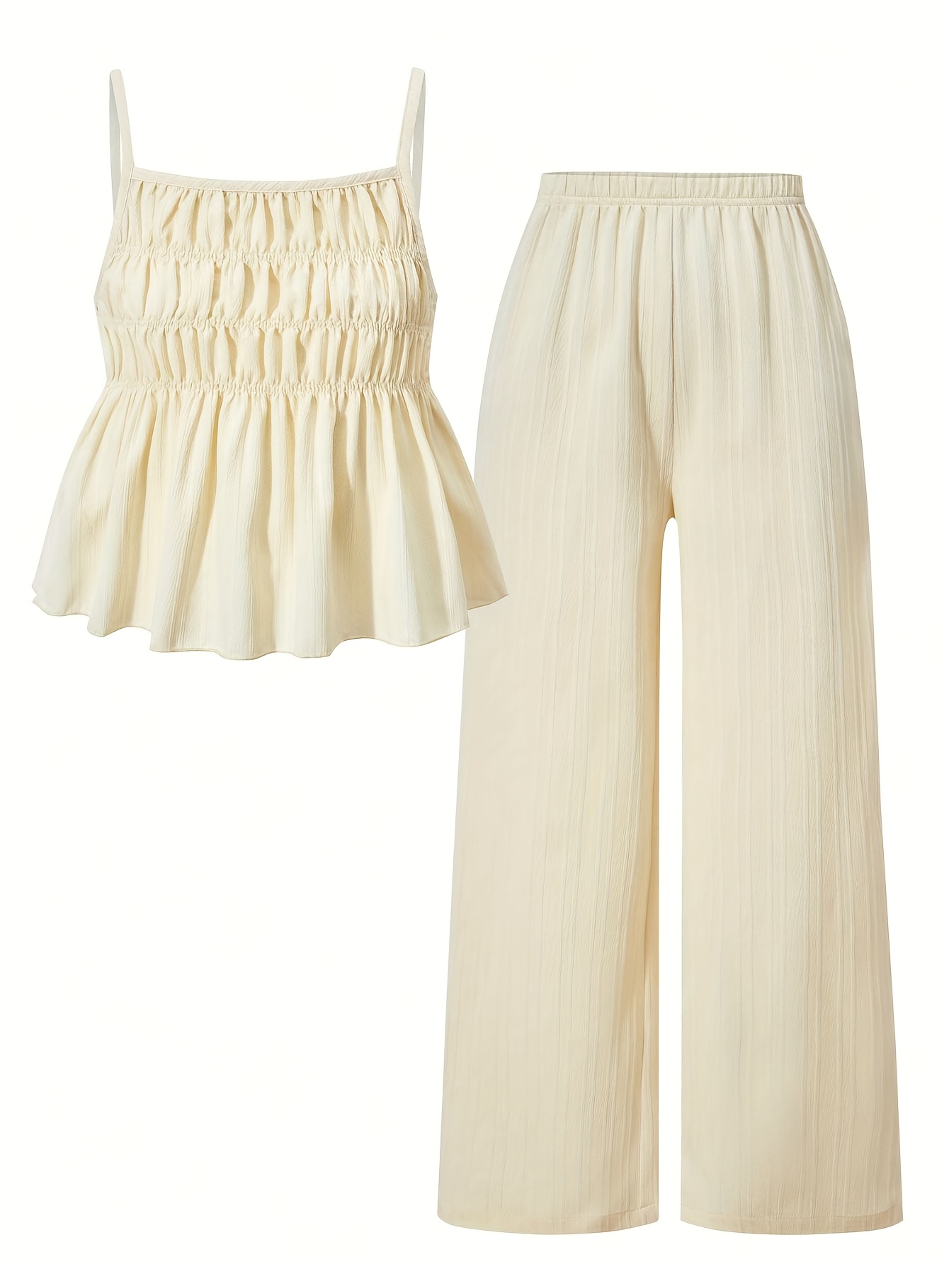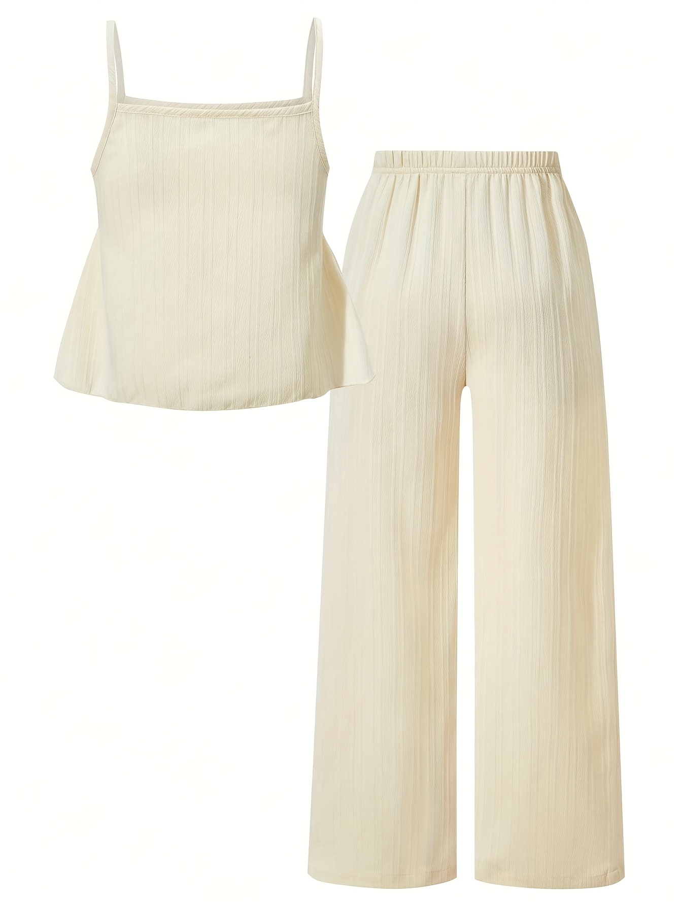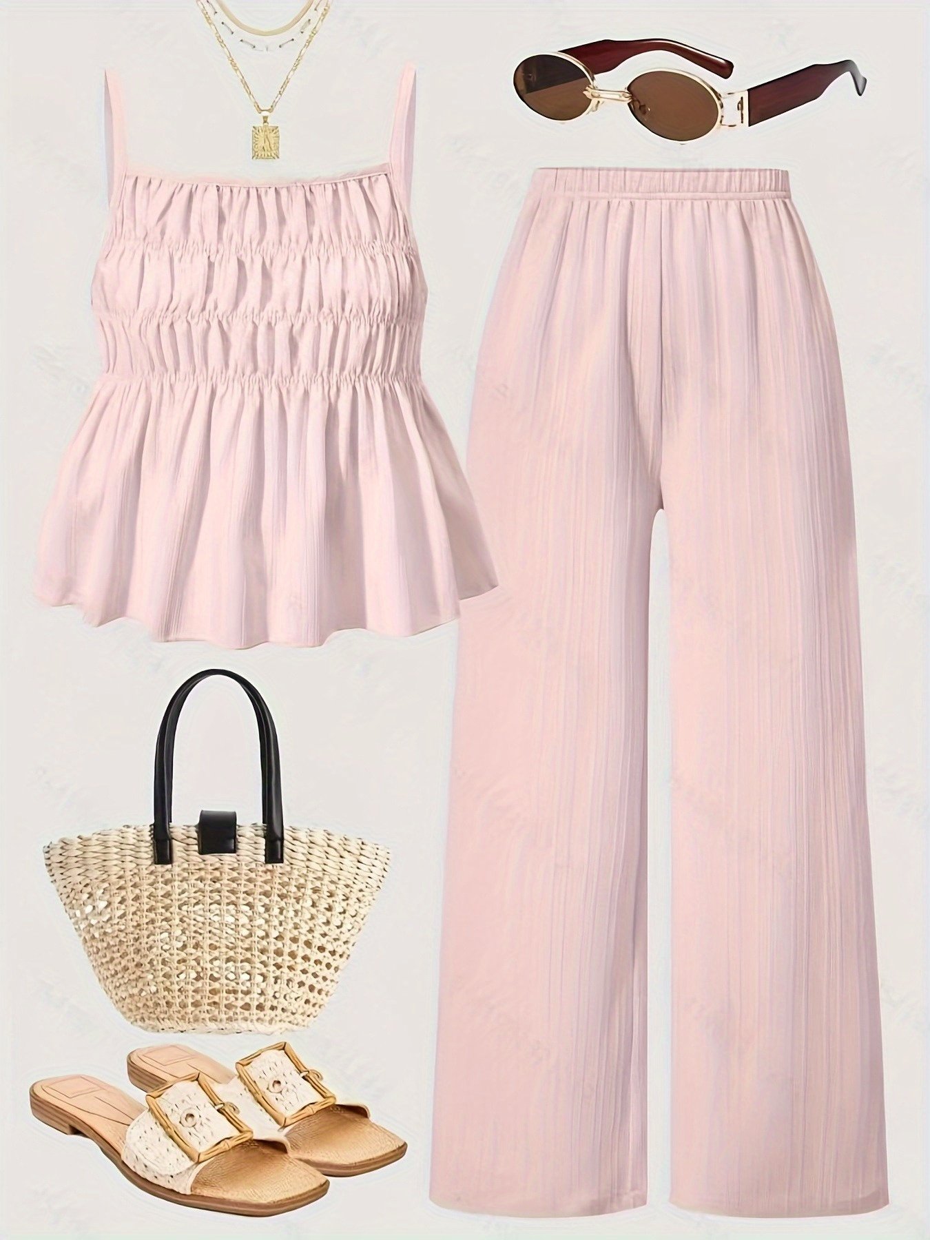 Un ensemble deux pièces doux et mignon pour filles, comprenant un débardeur et un pantalon large, parfait pour les sorties à la plage, les vacances, les trajets quotidiens, les fêtes de fin d’année et les séances photo sœurs, idéal pour le printemps et l’été, pour l’extérieur.