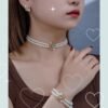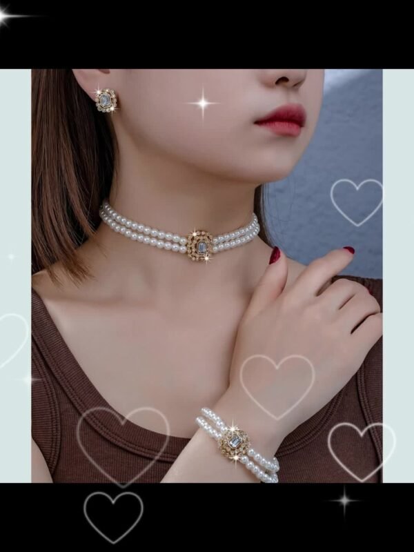 Un ensemble élégant d’inspiration française comprenant des boucles d’oreilles carrées géométriques à double rangée de fausses perles, un bracelet et un collier, parfait comme cadeau pour les amies et adapté au port quotidien par les femmes.