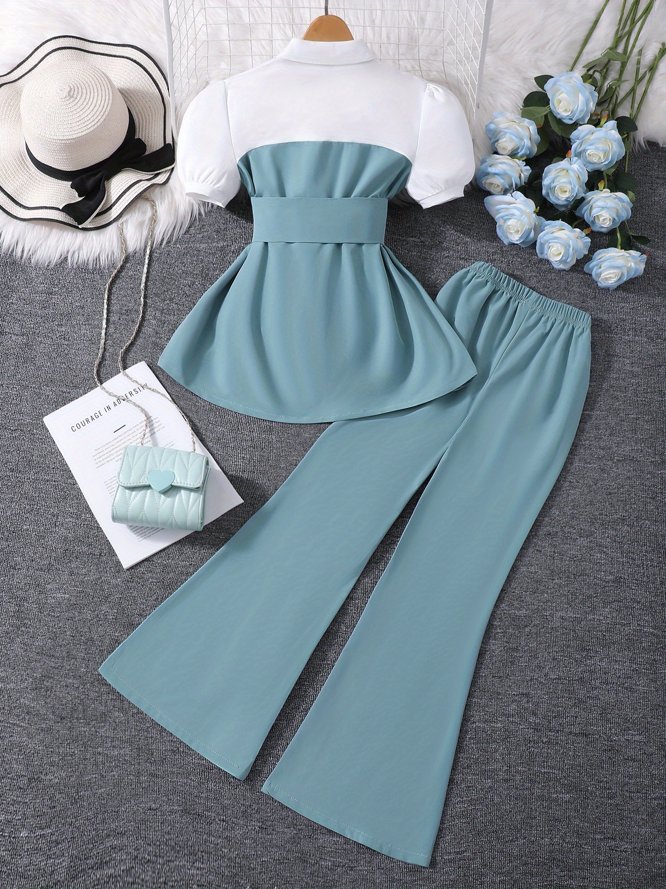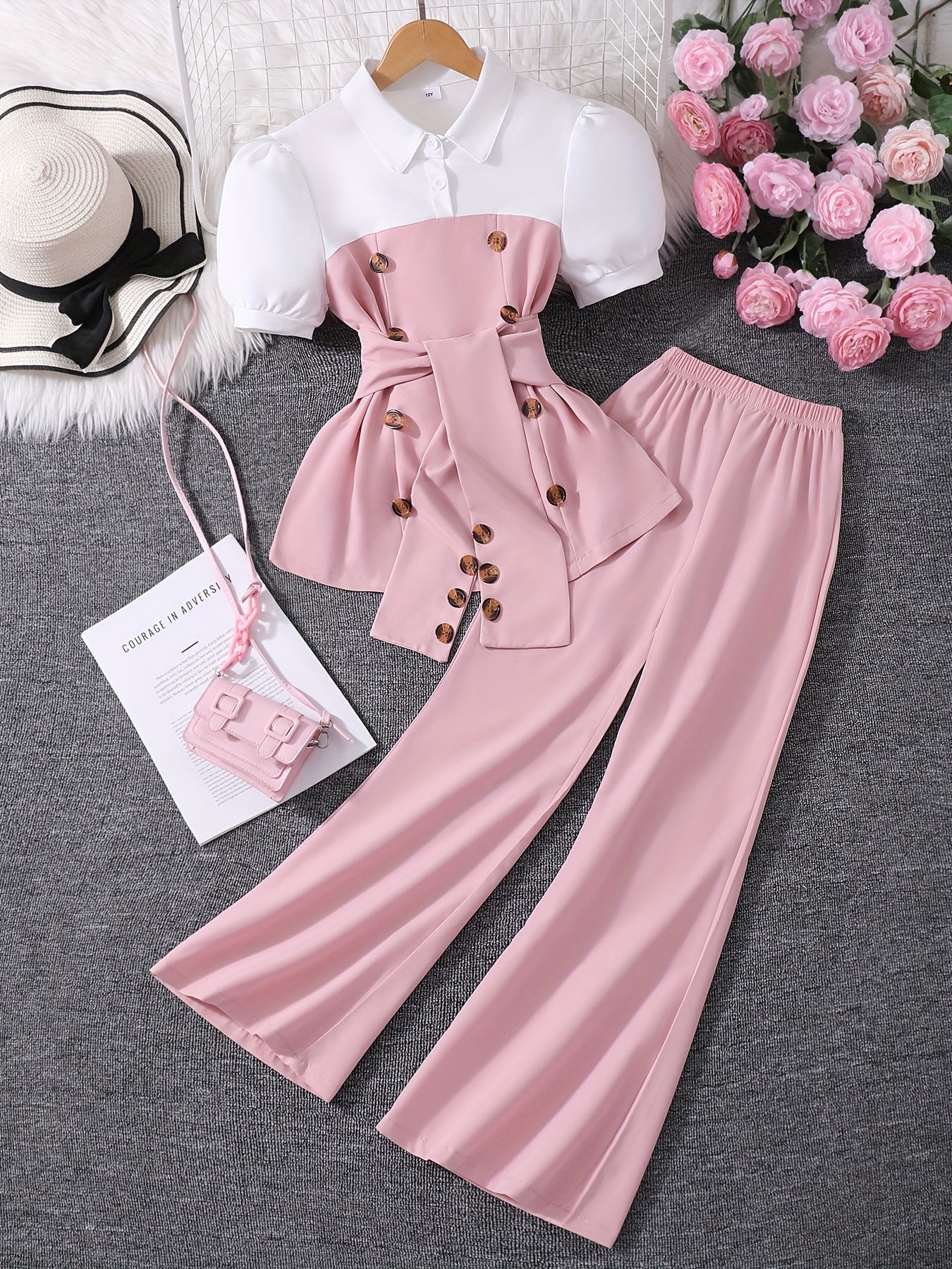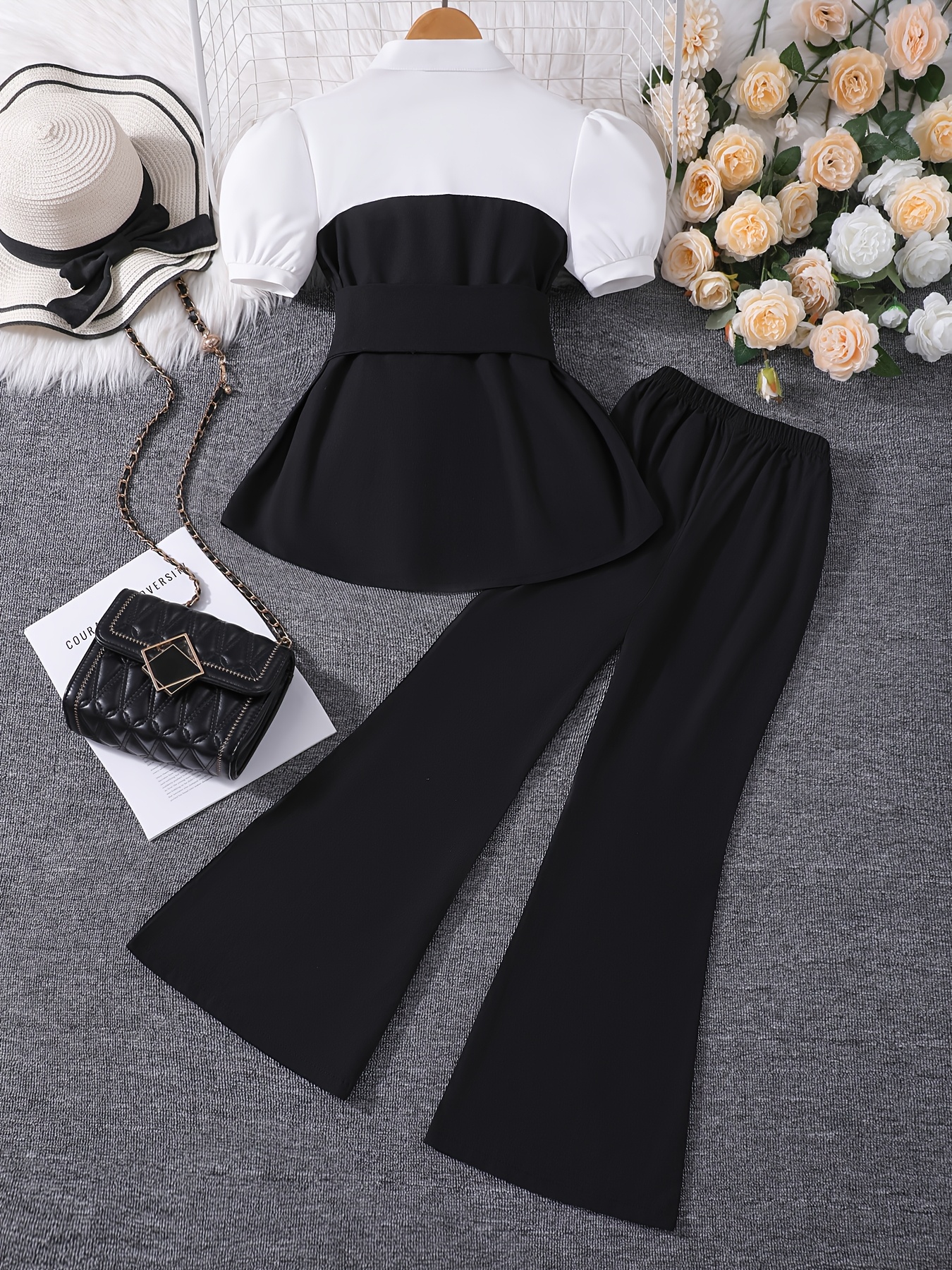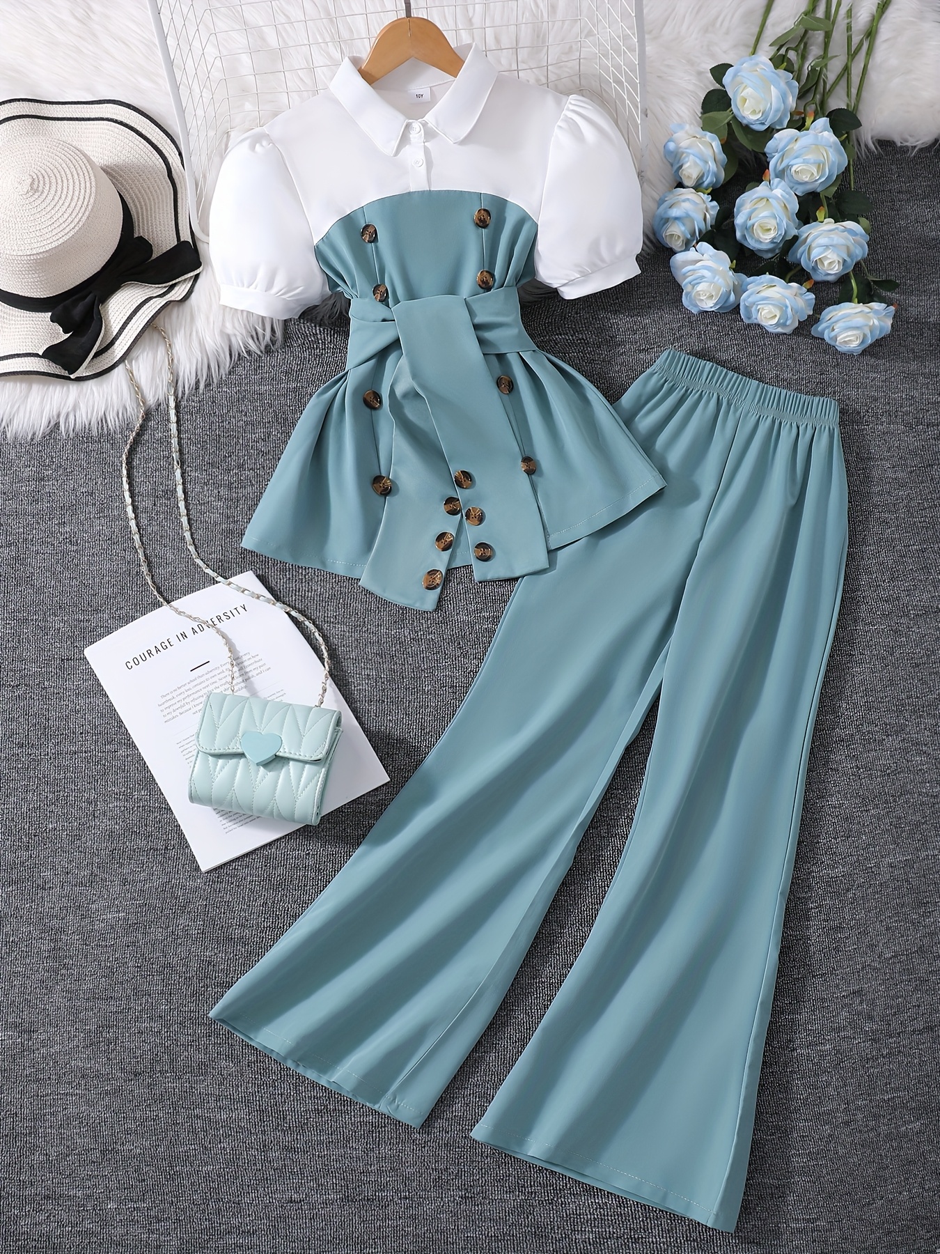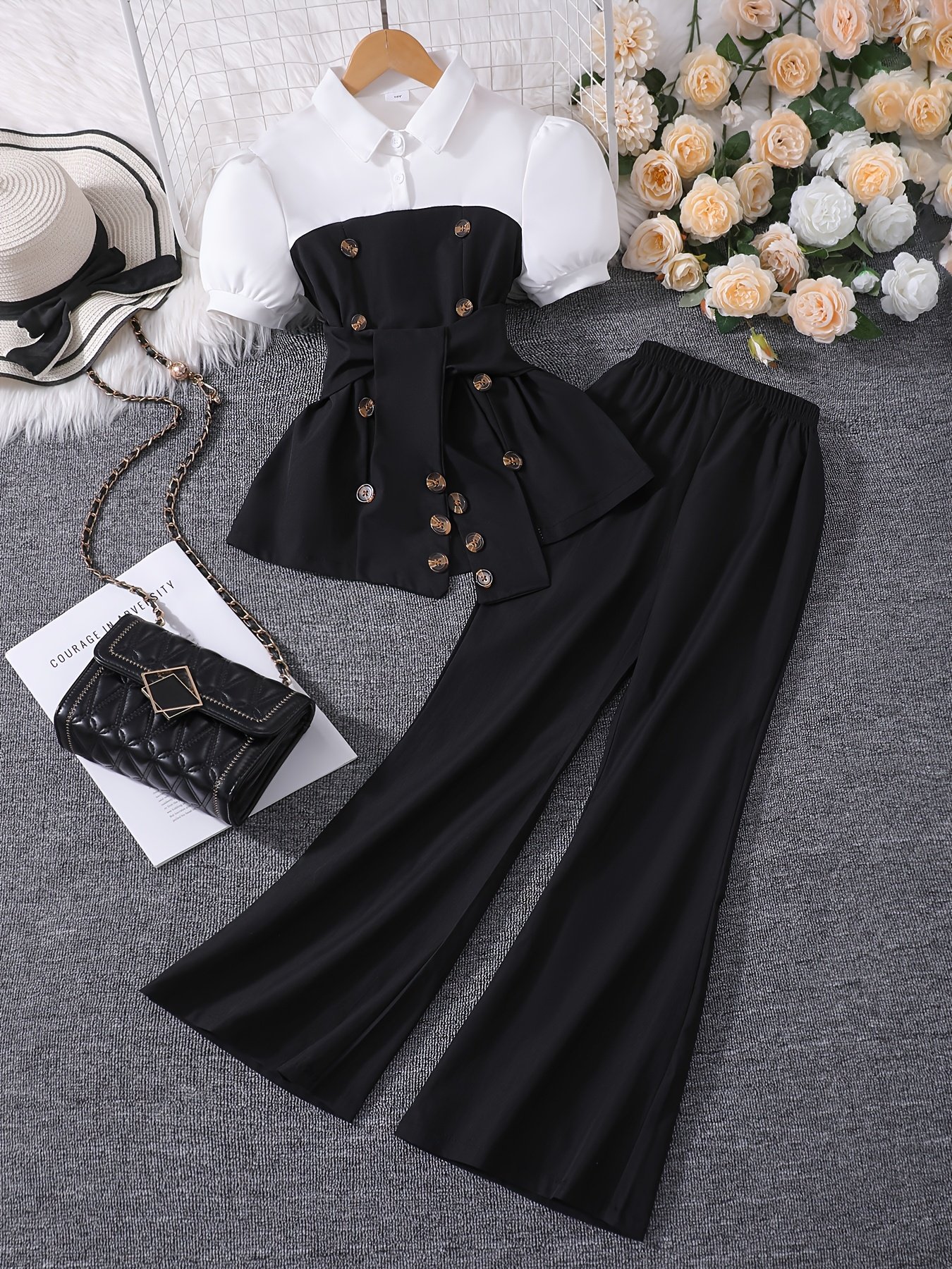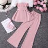 Un ensemble simple et tendance de 2 pantalons larges à jambes évasées pour filles