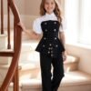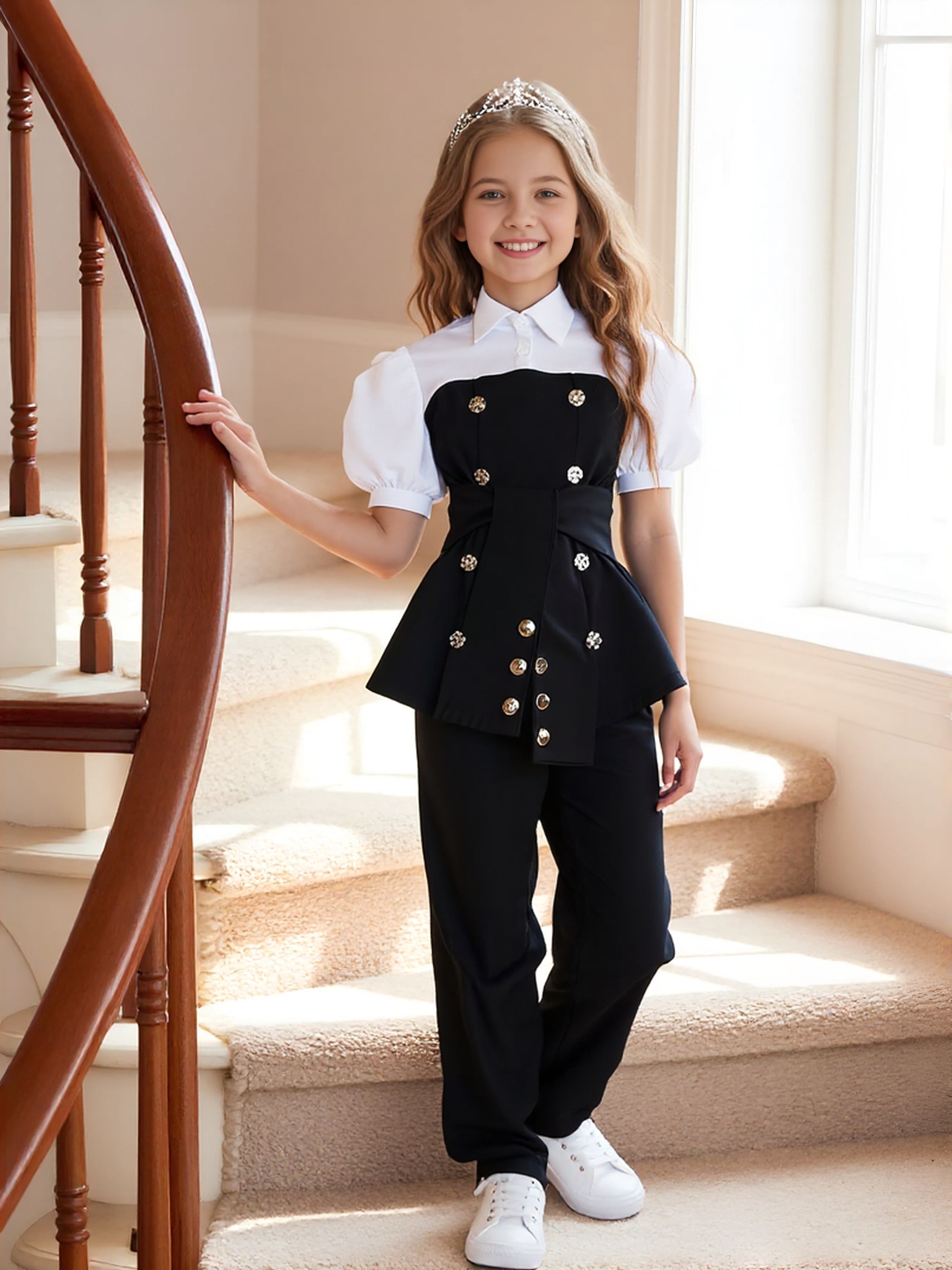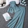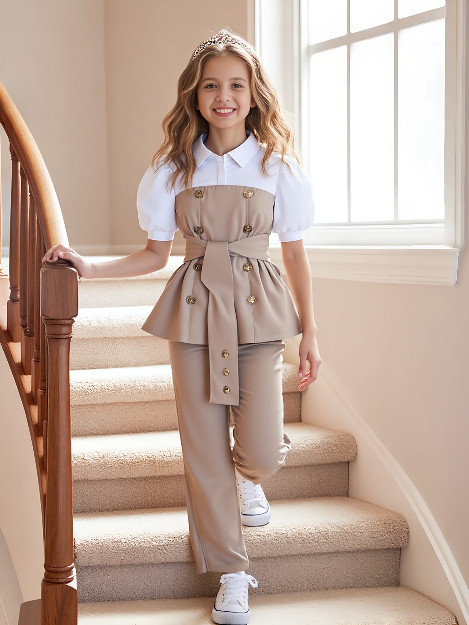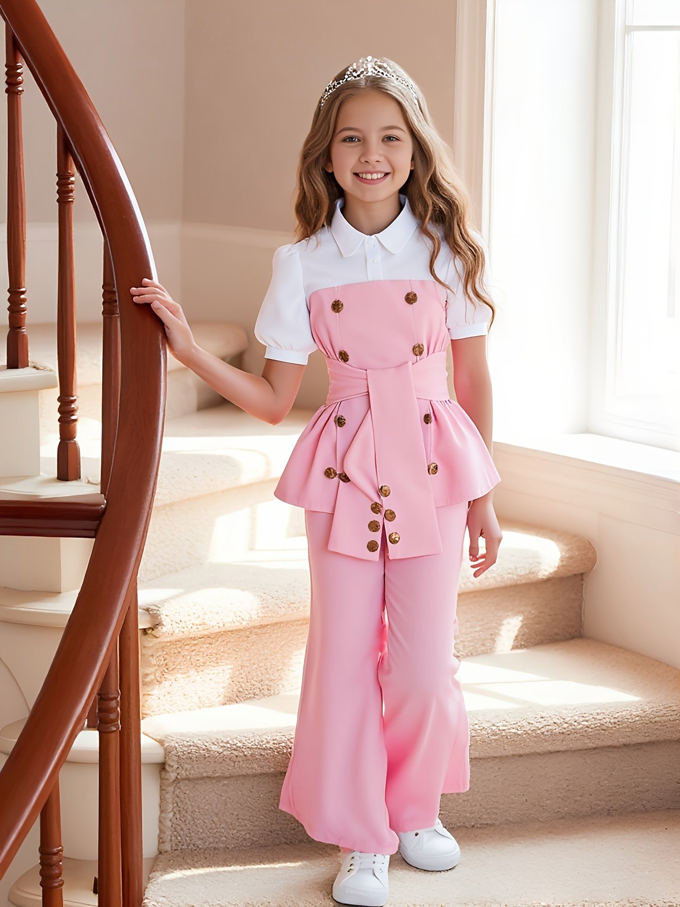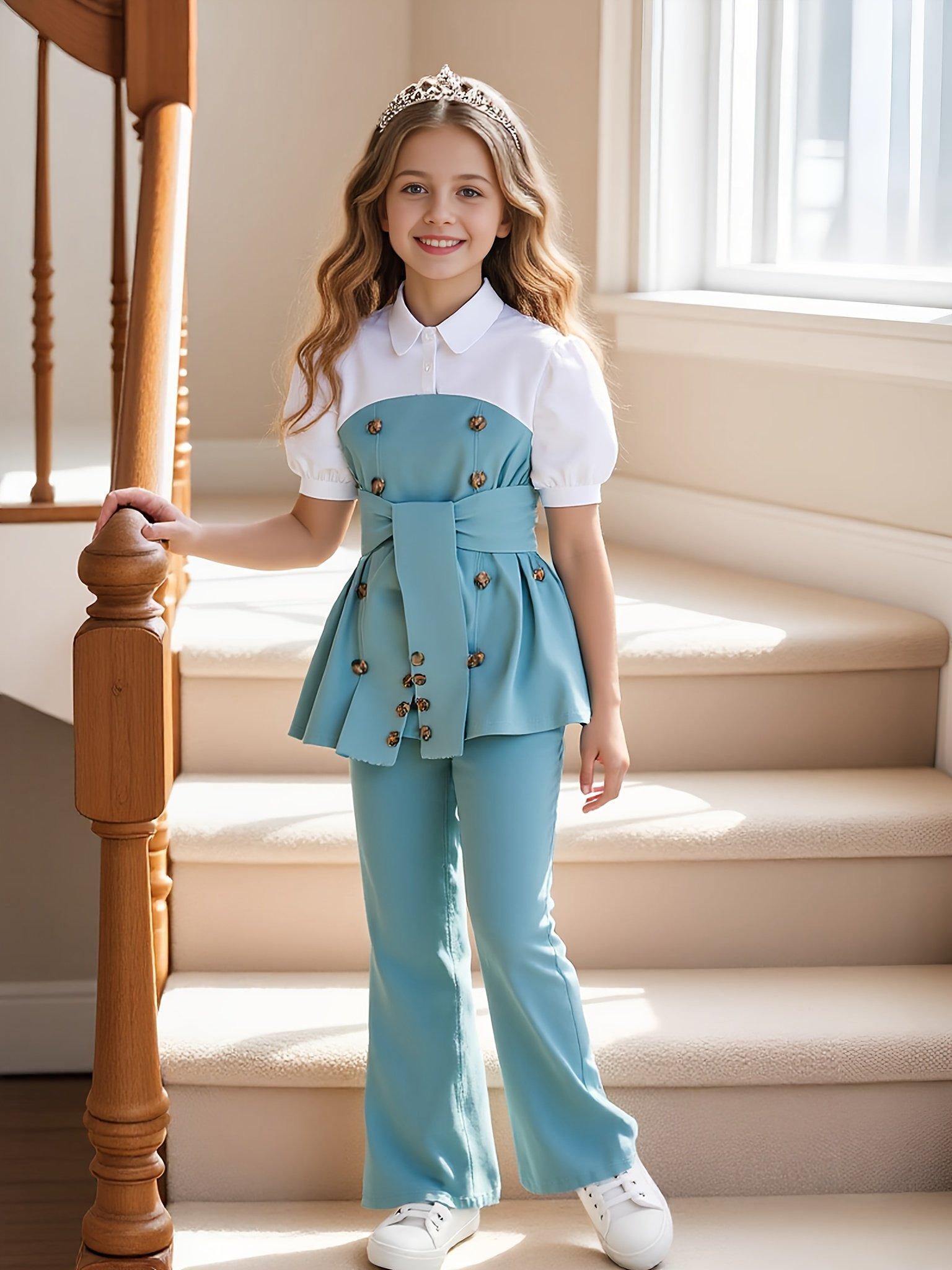 Un ensemble simple et tendance de 2 pantalons larges à jambes évasées pour filles