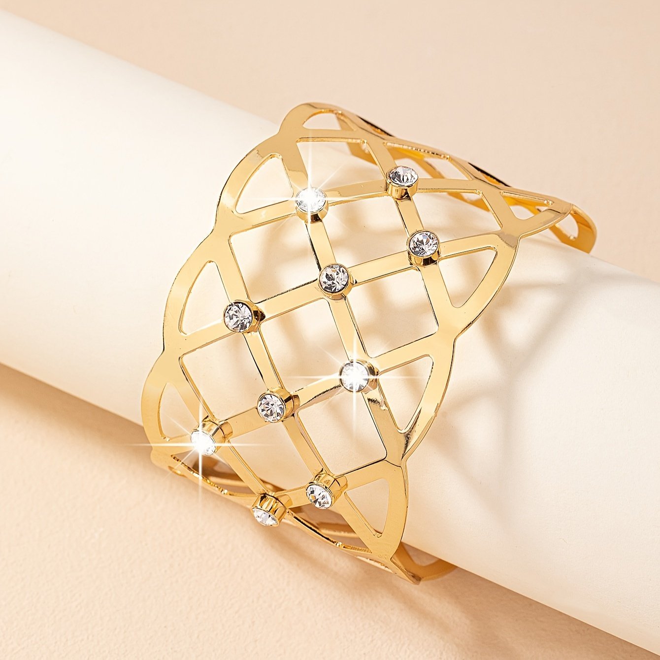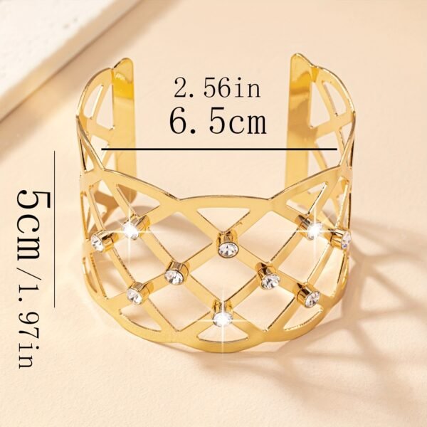 Un magnifique et élégant bracelet en métal ajouré orné de strass, parfait pour les festivals, les anniversaires, les rendez-vous, les bals, les banquets, les mariages, les fêtes, les vacances, le shopping, les affaires et les déplacements quotidiens.