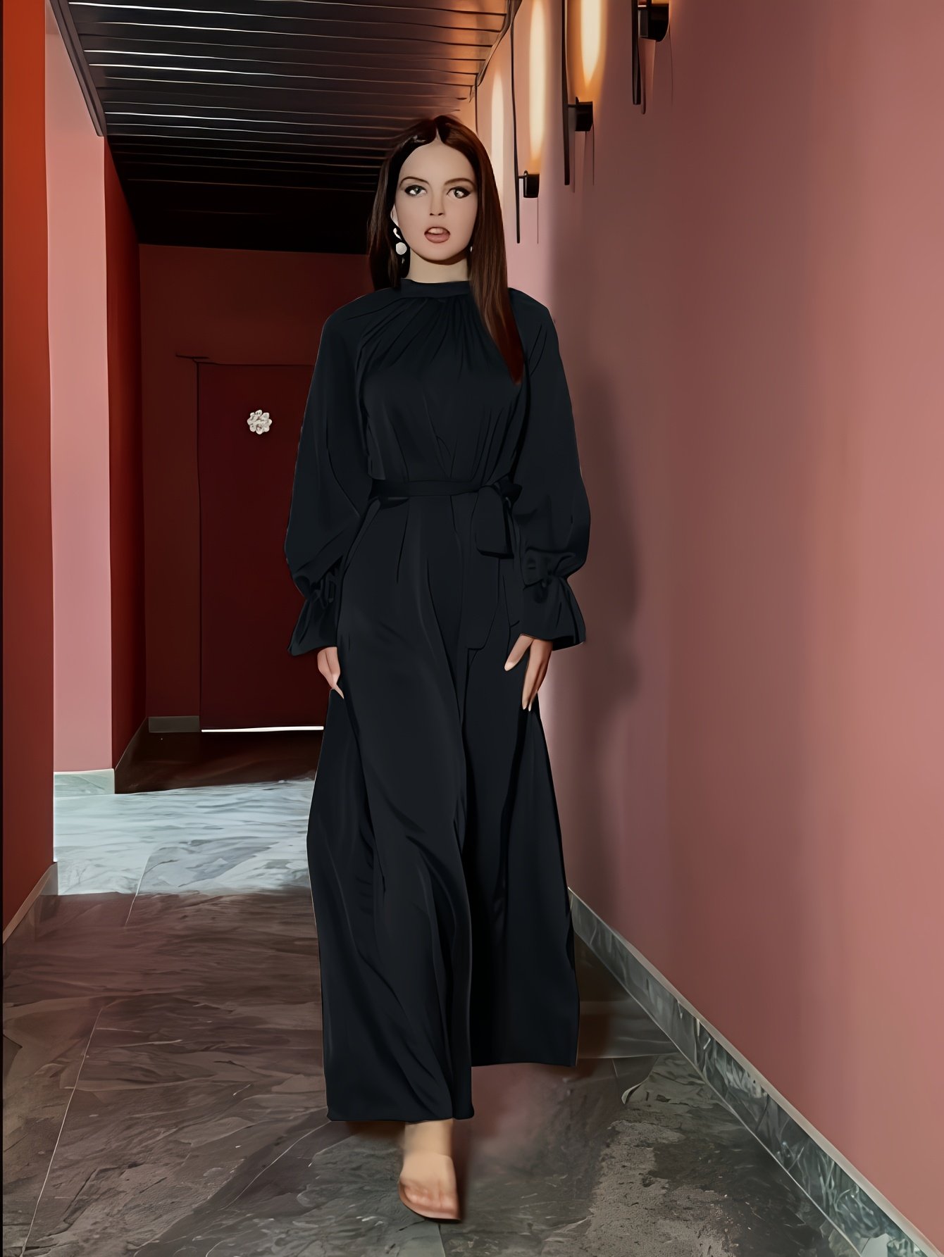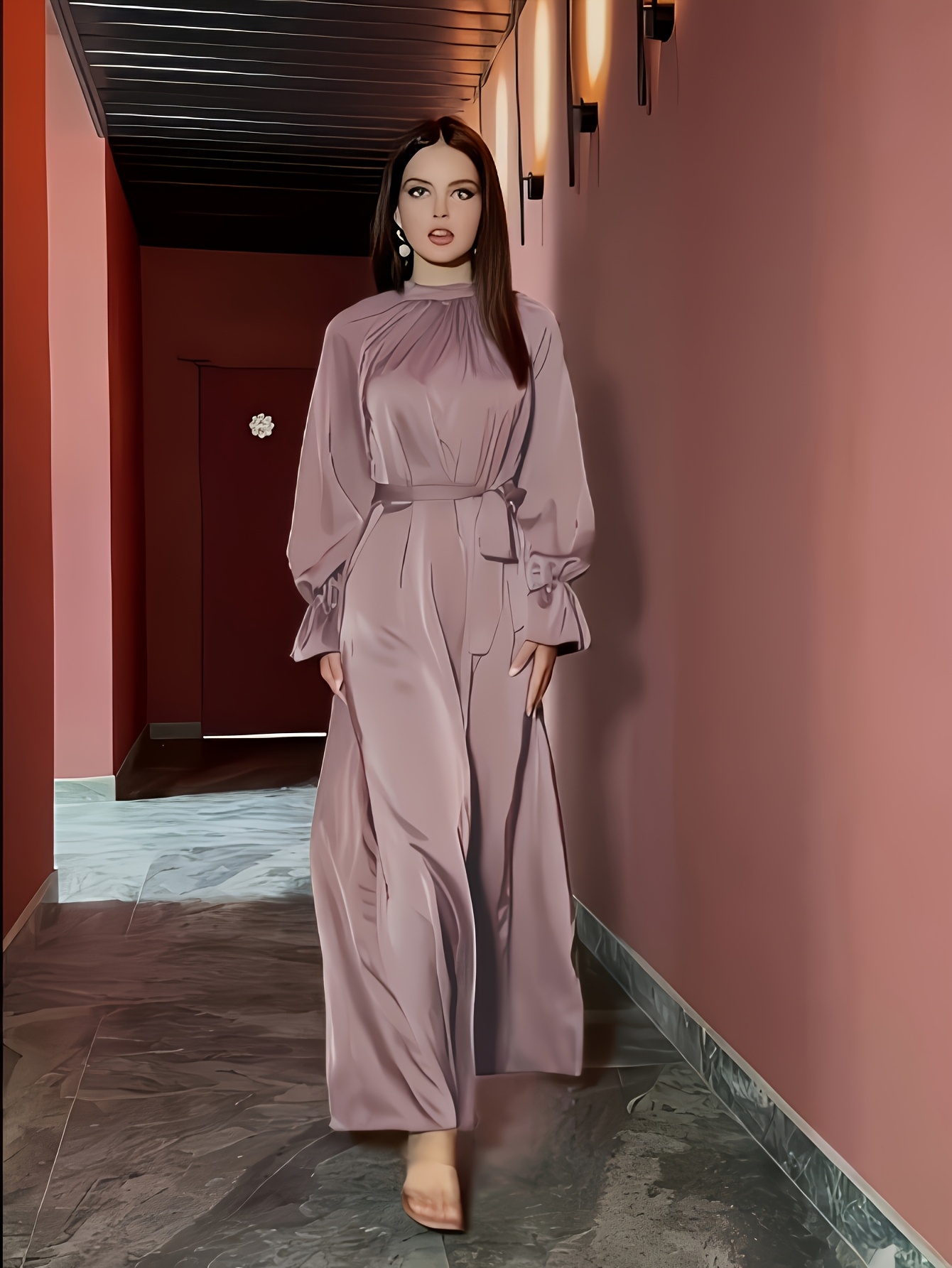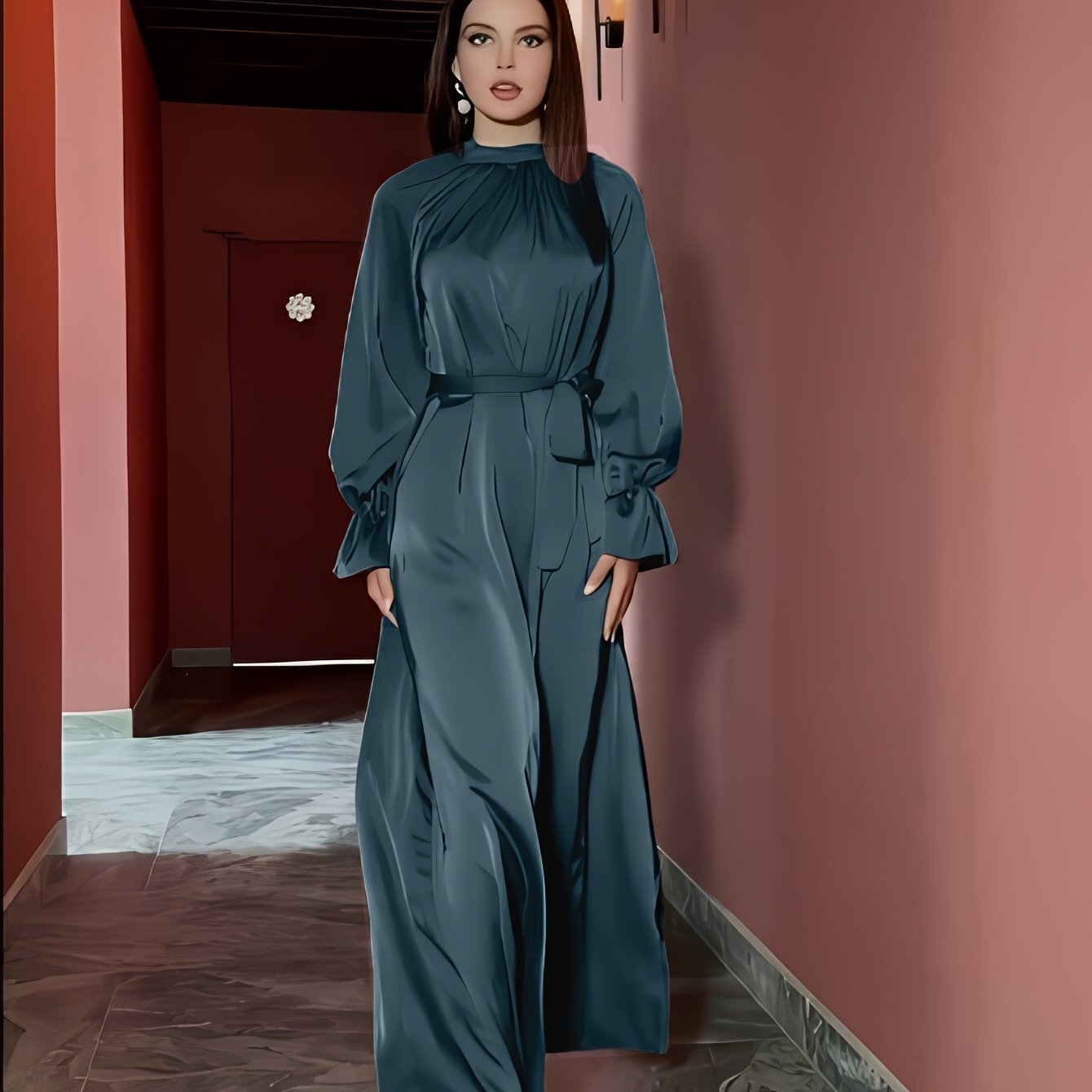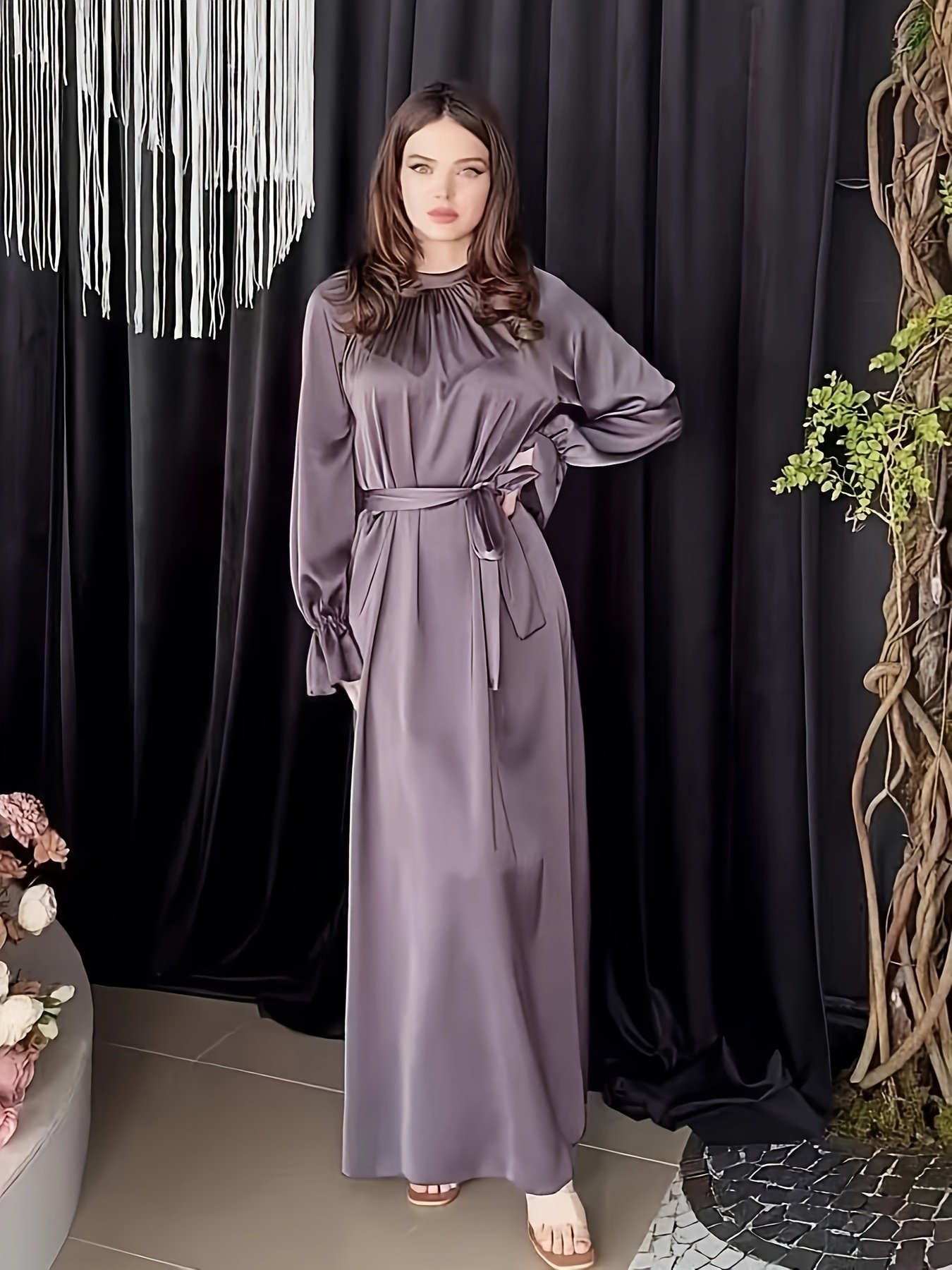 Une robe en satin élégante pour femmes, avec des manches longues