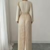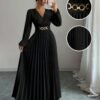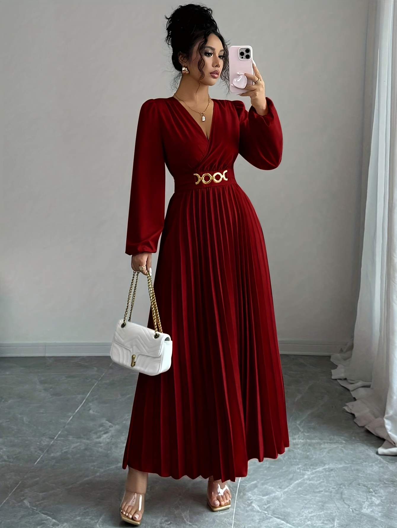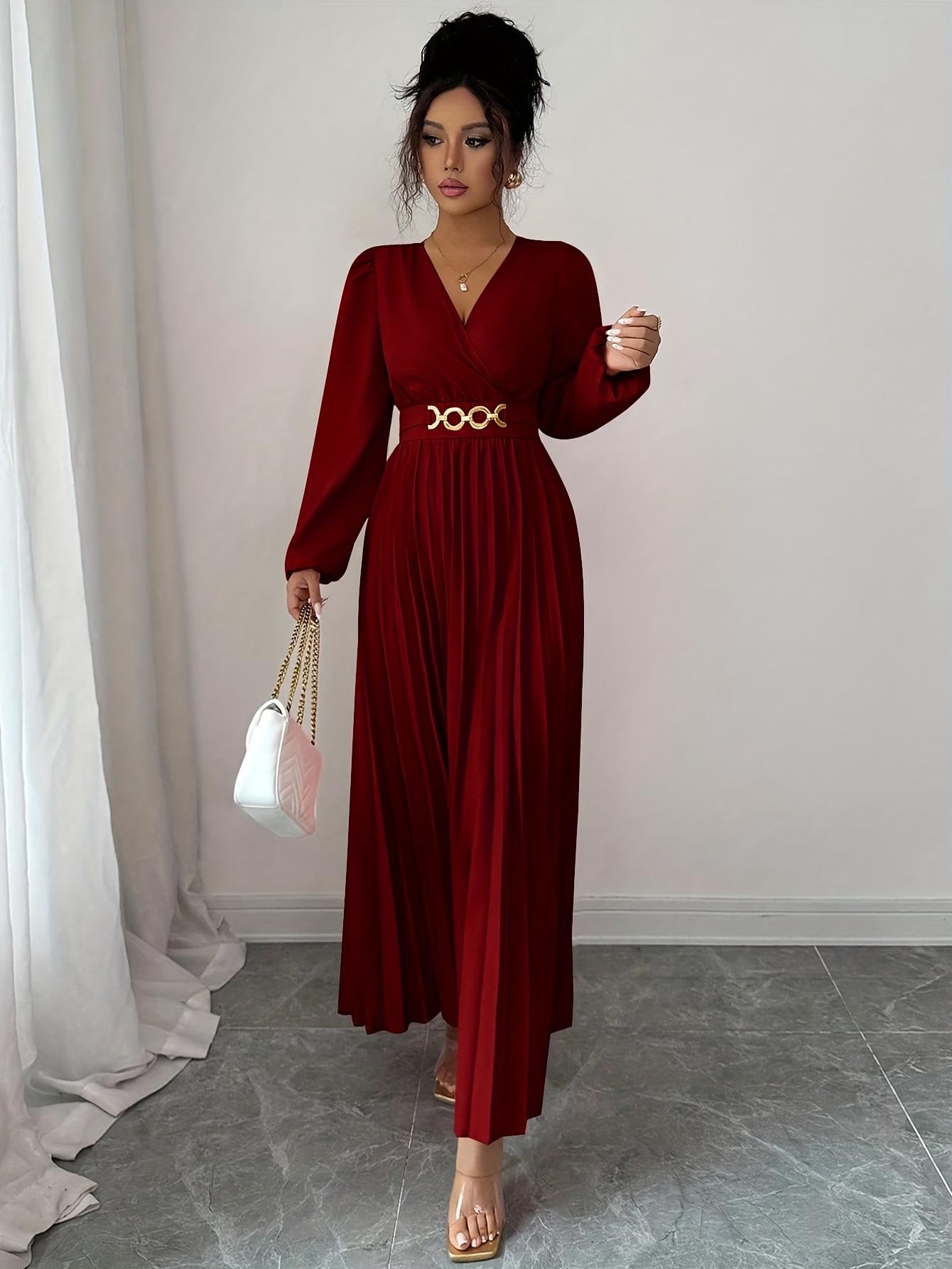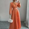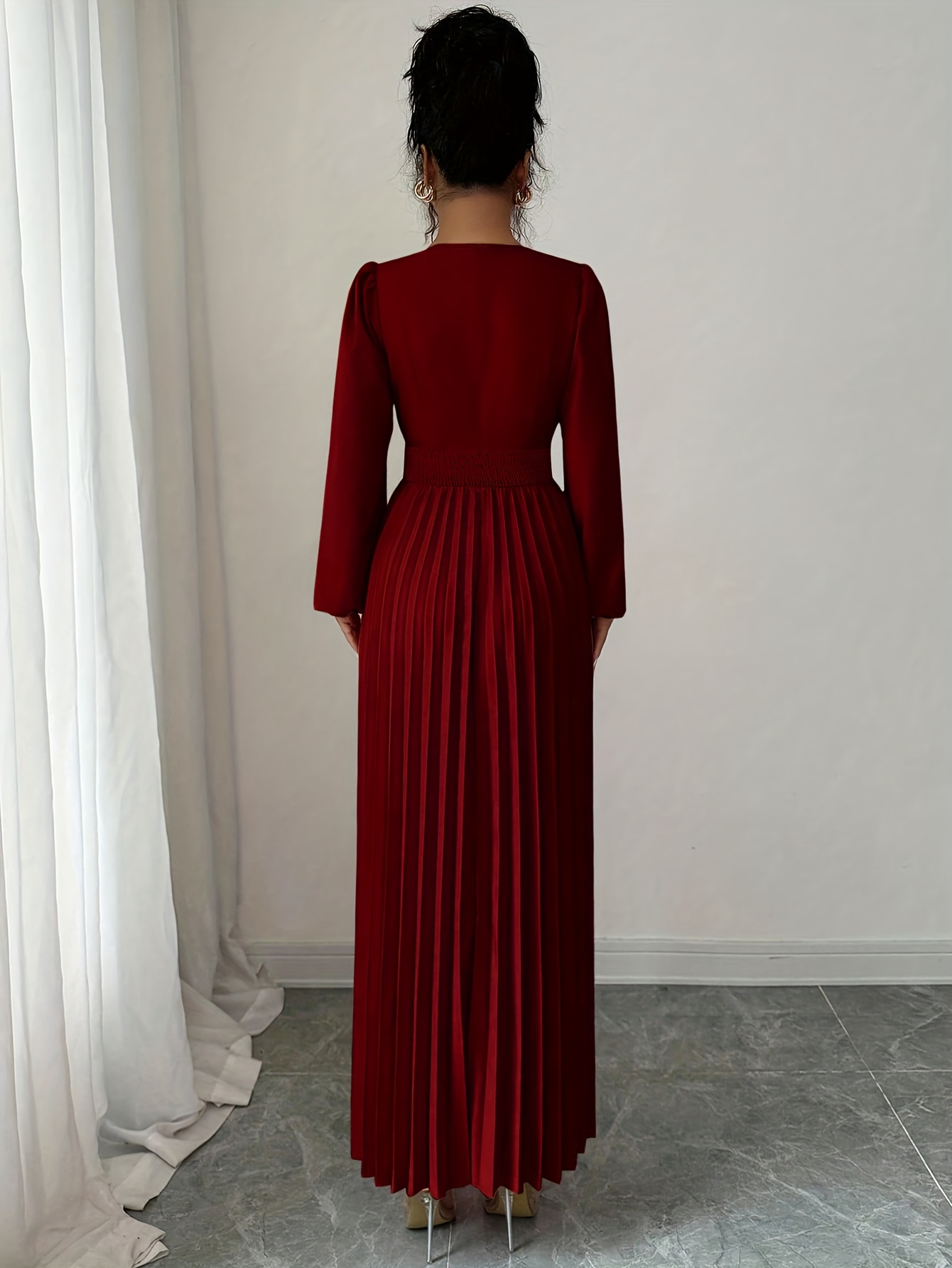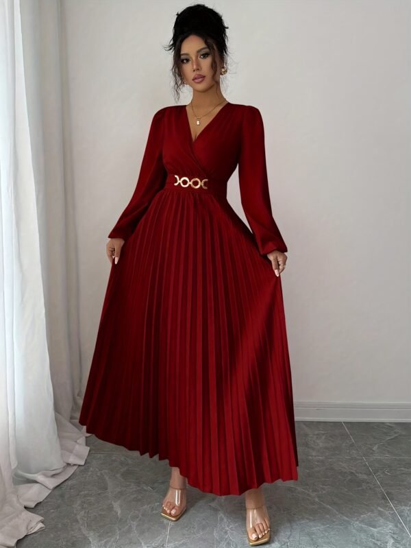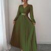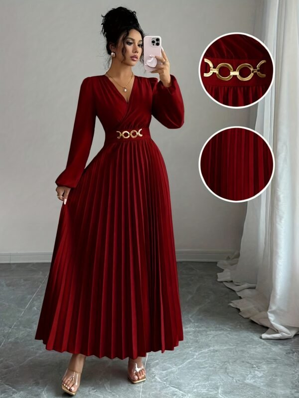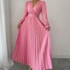 Une robe plissée de couleur unie avec un col en V dotée d’une fermeture éclair latérale