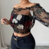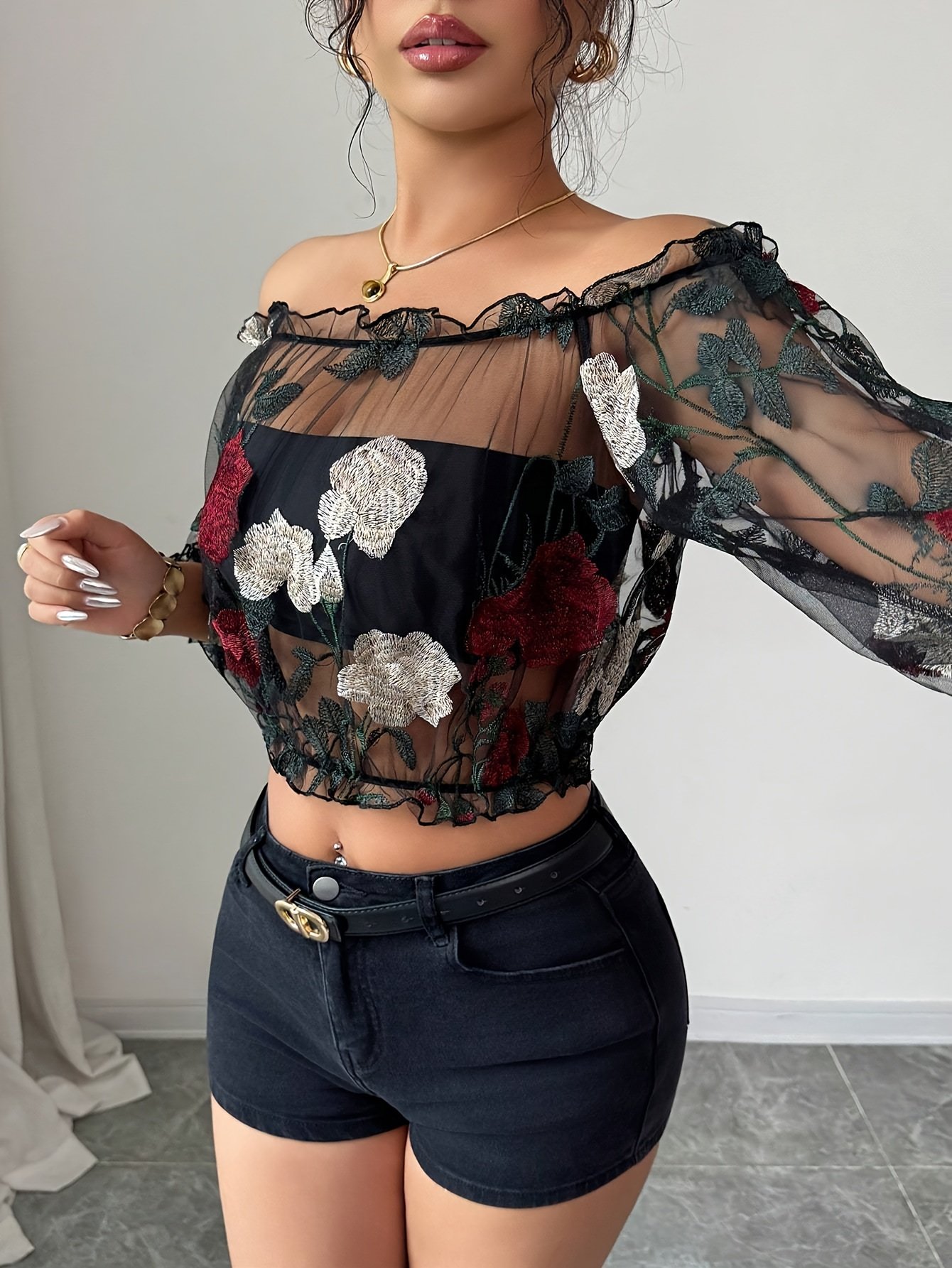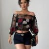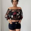 + Livraison de 12 à 17 joursBlouse à manches courtes à volants style dentelle avec col