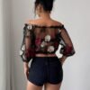 Veste courte bohème élégante pour femmes – Blouse à manches courtes à volants style dentelle avec col, haut non extensible lavable en machine pour printemps, été, automne, tenues de soirée, mariage ou rendez-vous (Non)