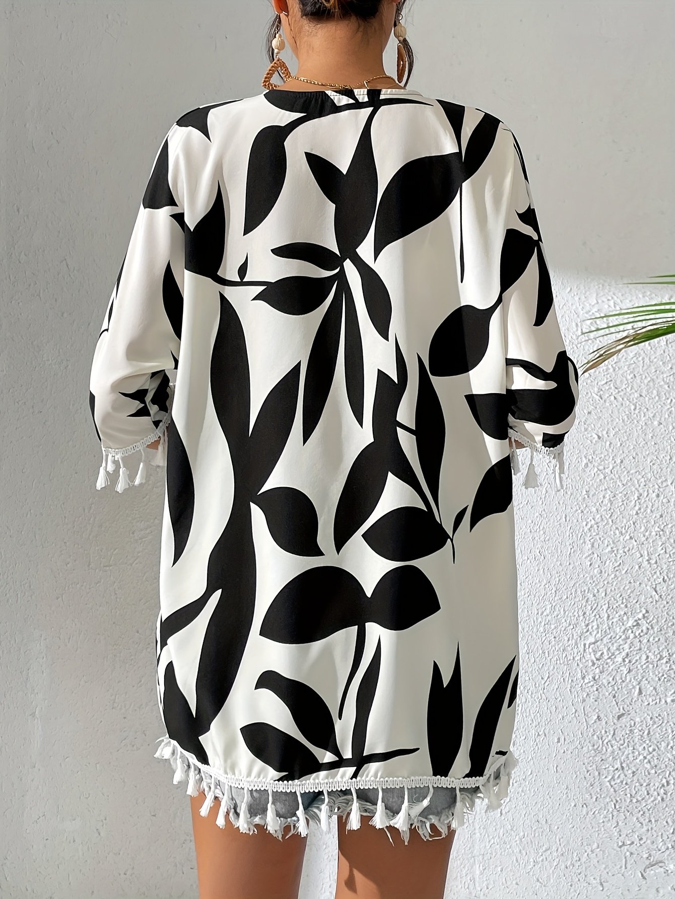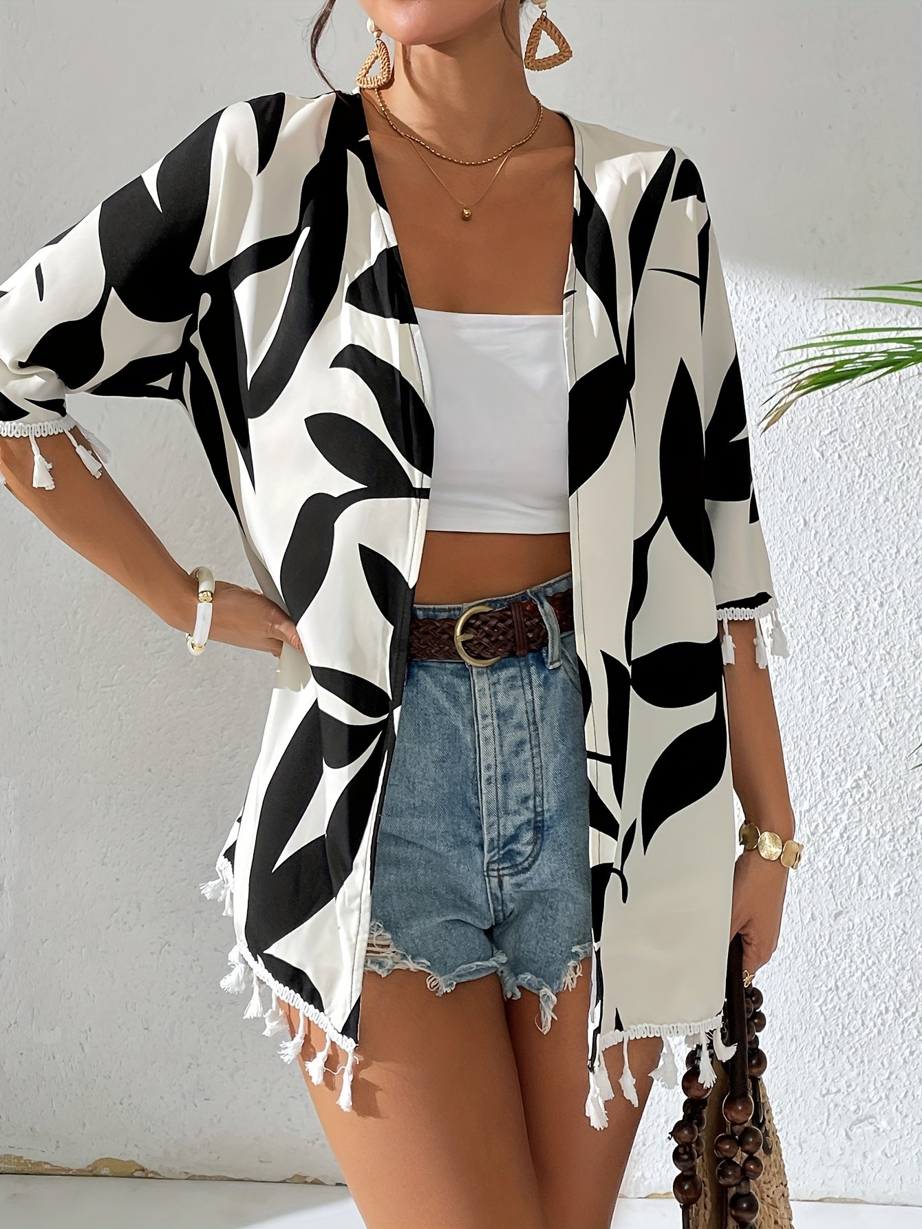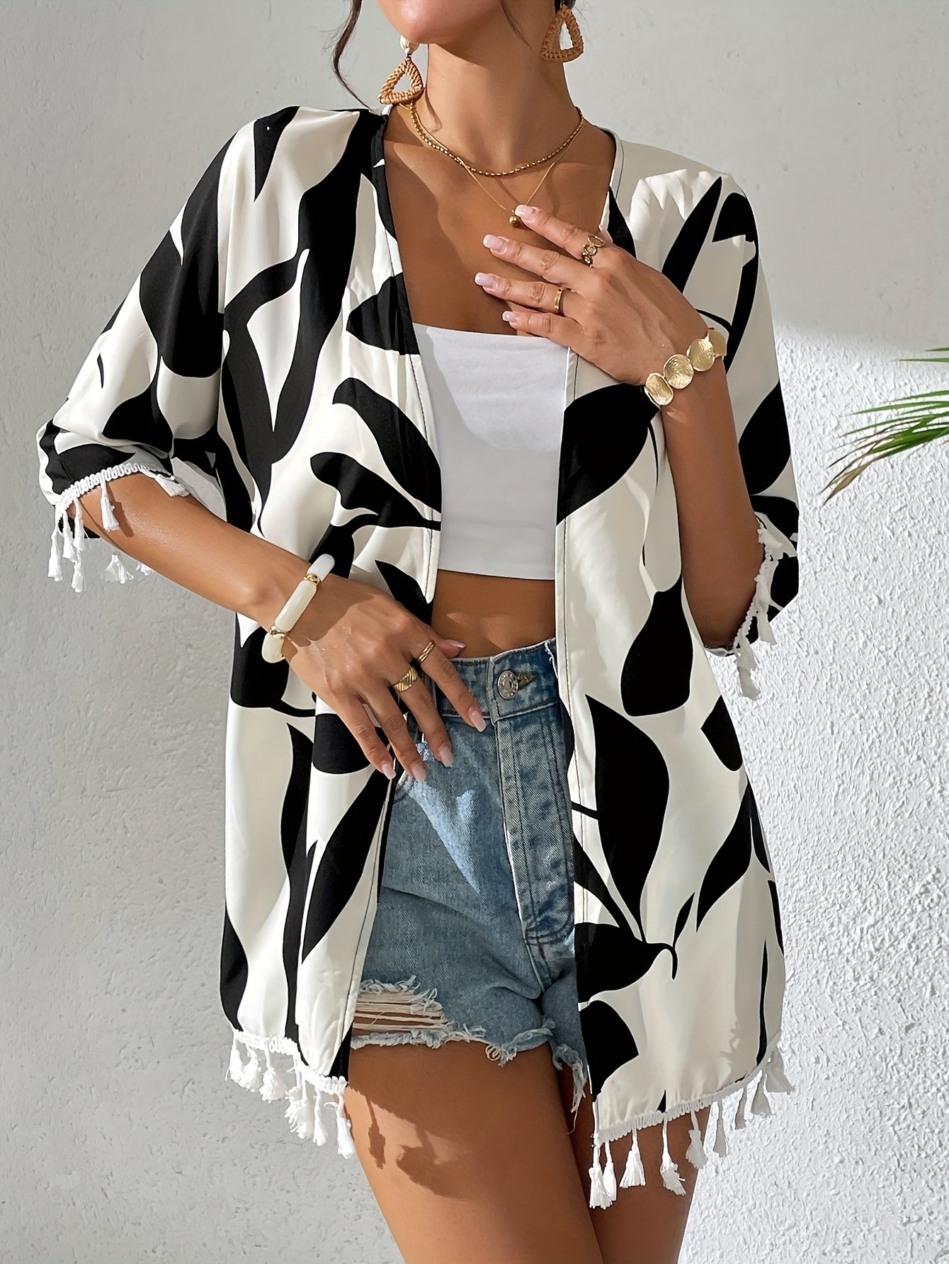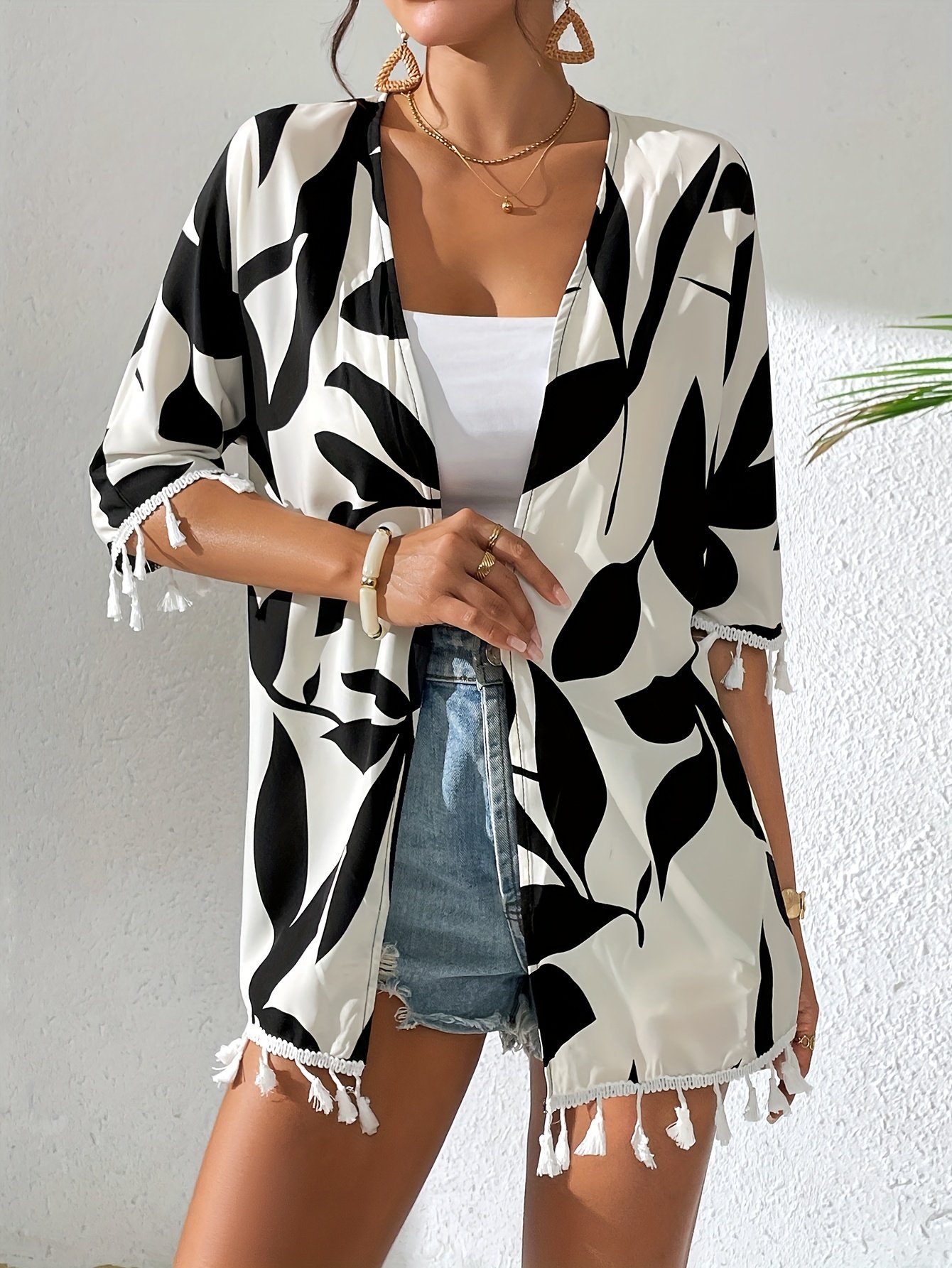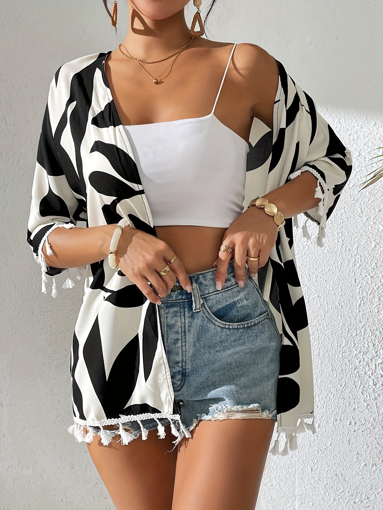 YY0207533 Cardigan à Franges Patchwork Mode Femme Européenne et Américaine Veste Extérieure